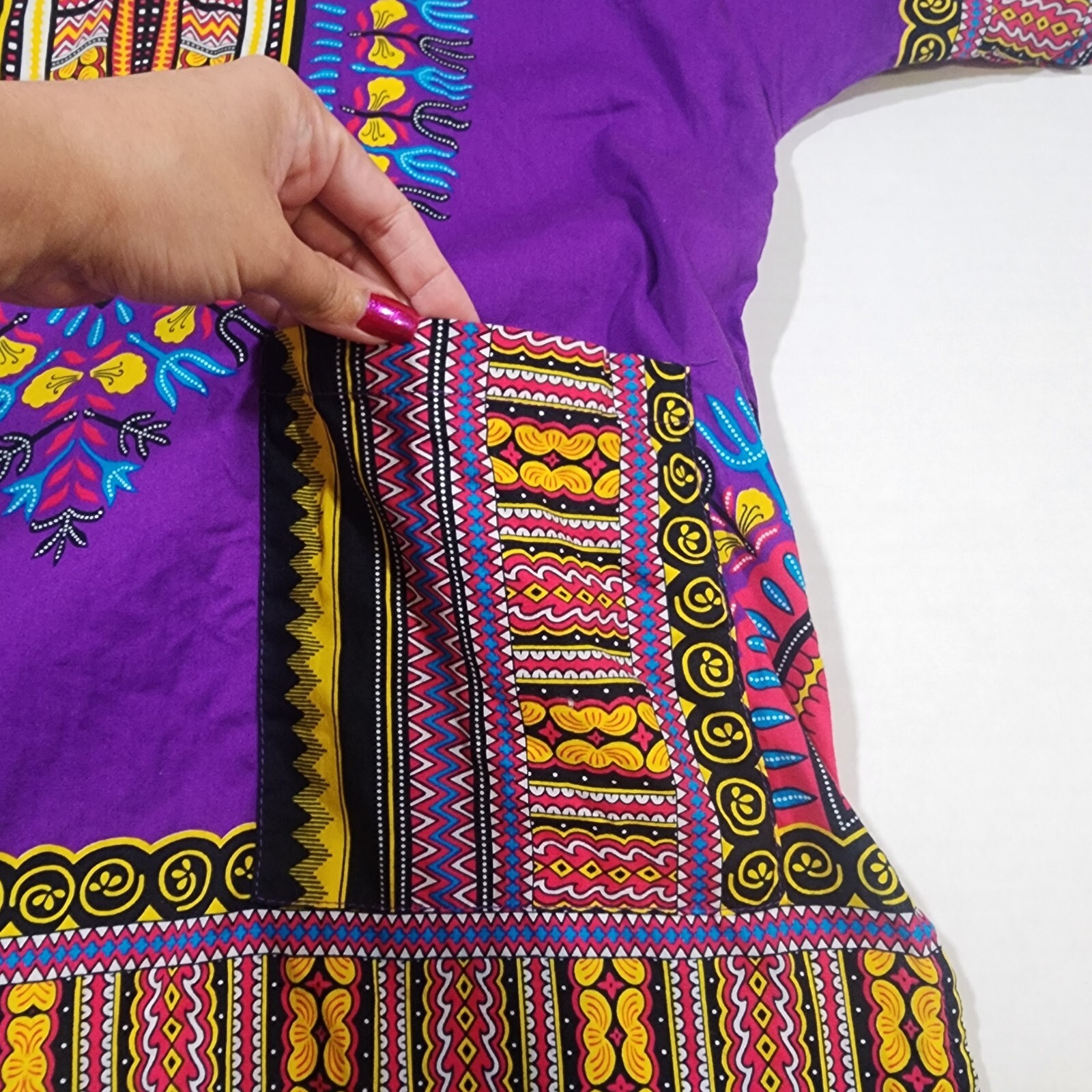 как выглядит Womens Size S African Style Cotton Dashiki Shirt with Pockets Purple фото
