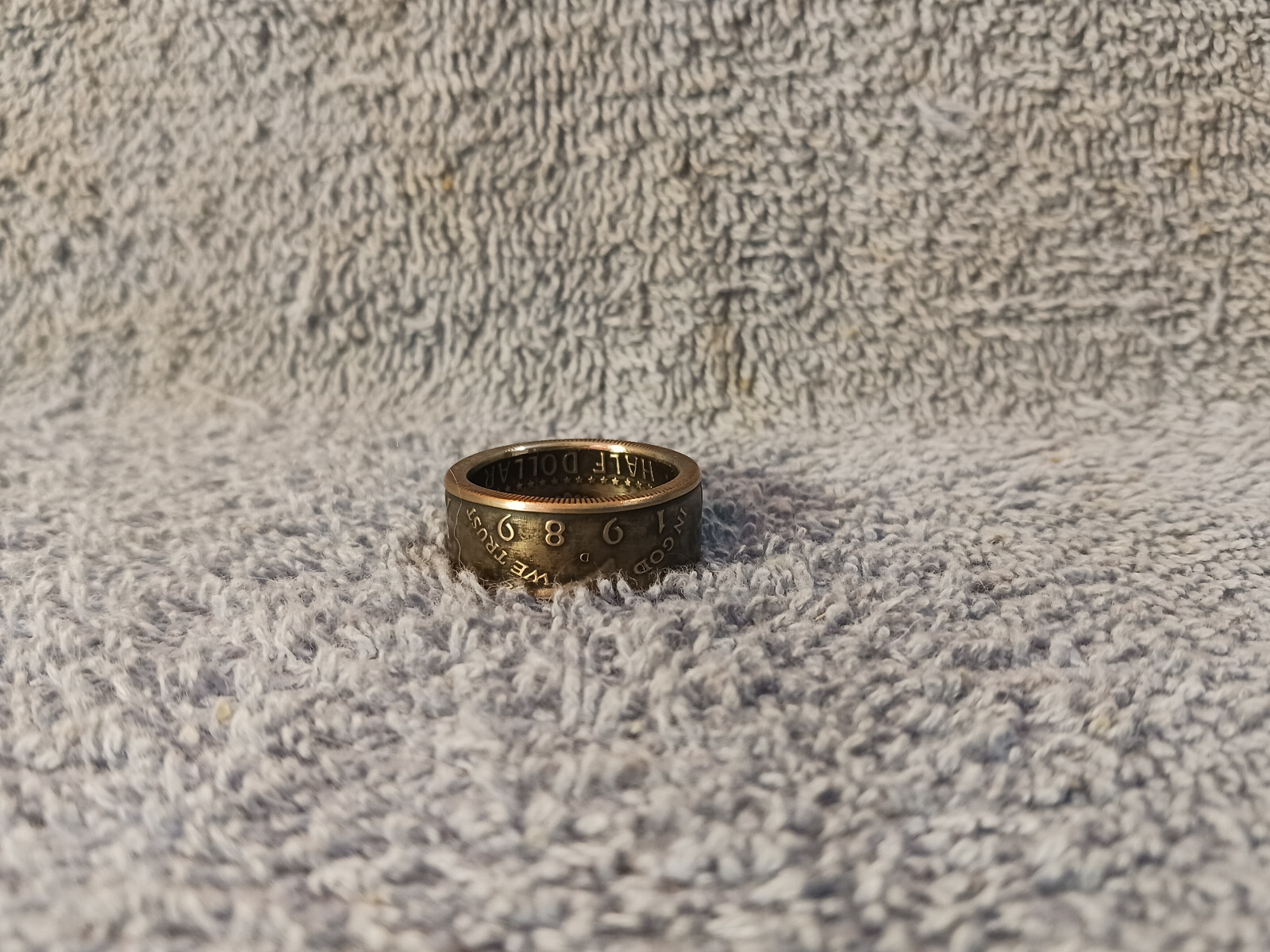 1989 Kennedy Half Dollars size 10- 1/2 coin ring handmade mixed metals