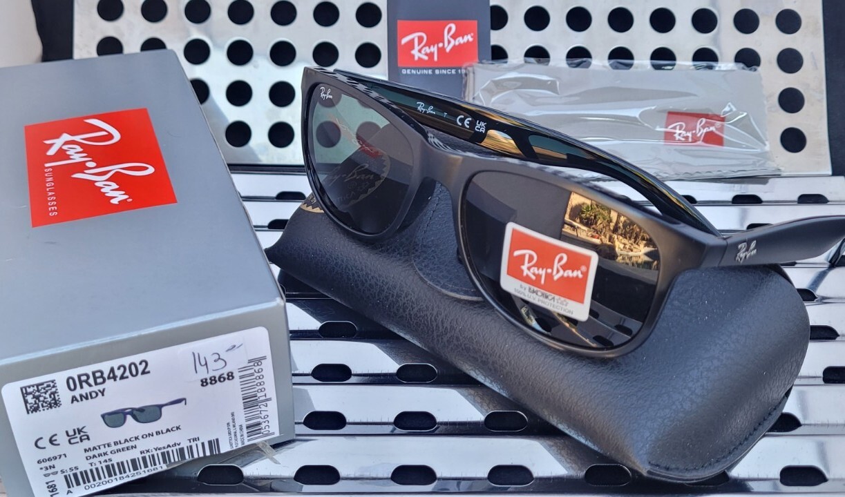New Ray Ban ANDY RB4202 606/971 Sunglasses Matte Black/Black w/ Dark Green Lens