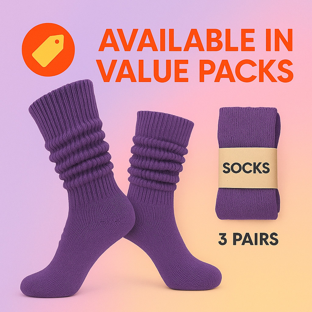 1 Pair Women's Cotton Slouch Socks Extra Heavy Extra Long Shoe Size 5 to 10