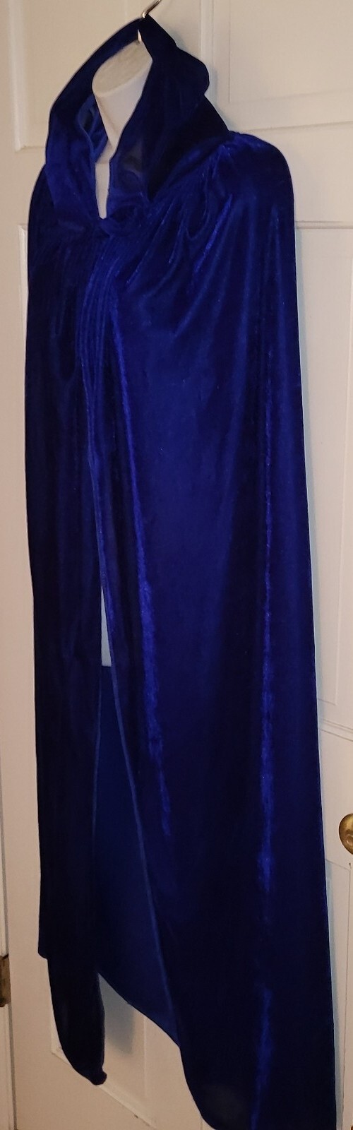 ROYAL blue Velvet Look Hooded Tie Neck Midi Maxi Long Cape S
