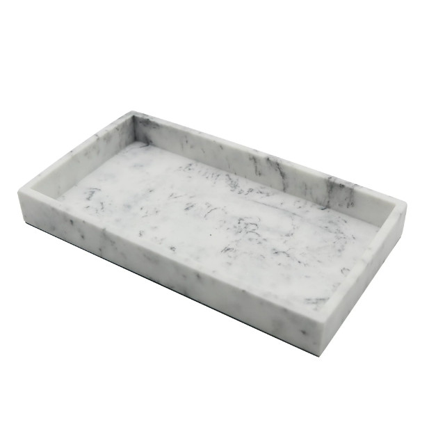 Faux Marble Hand Towel Vanity Tray White Guest Countertop Cosmetic Holder Room