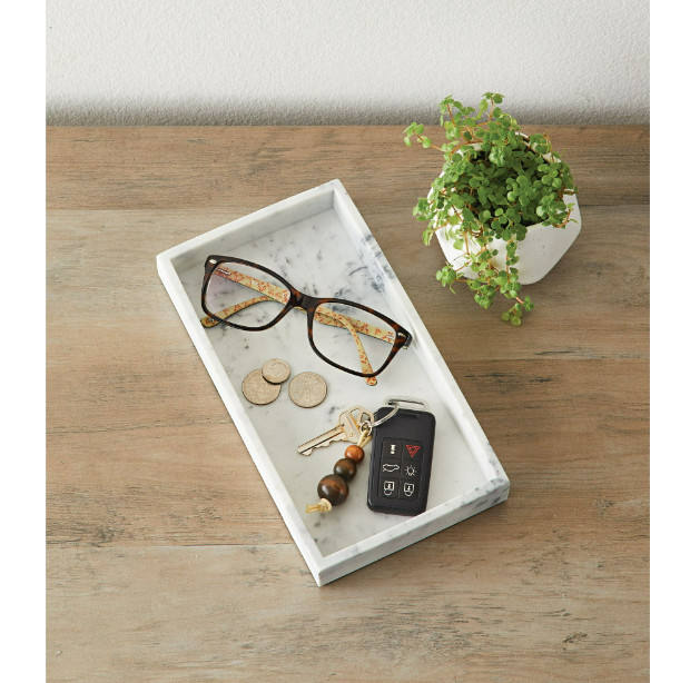 как выглядит Faux Marble Hand Towel Vanity Tray White Guest Countertop Cosmetic Holder Room фото