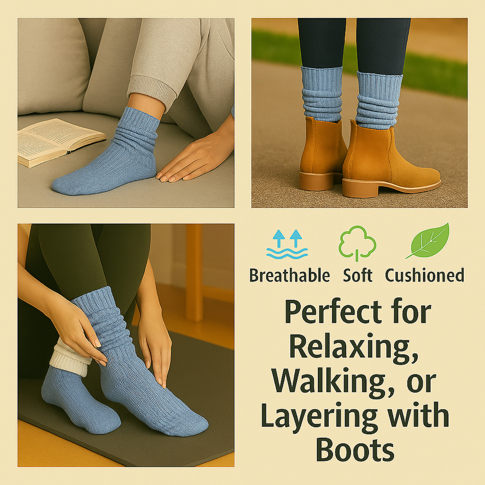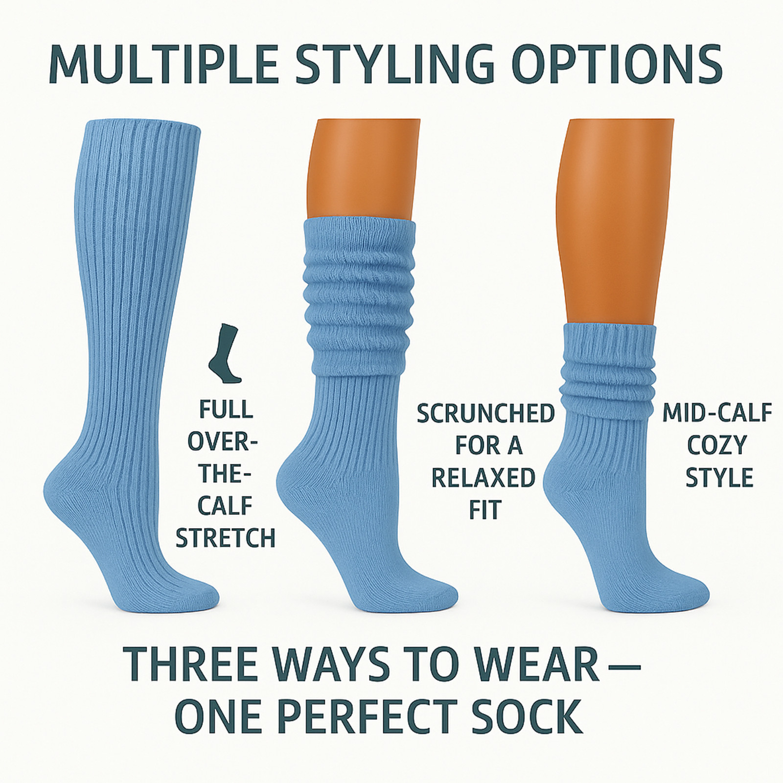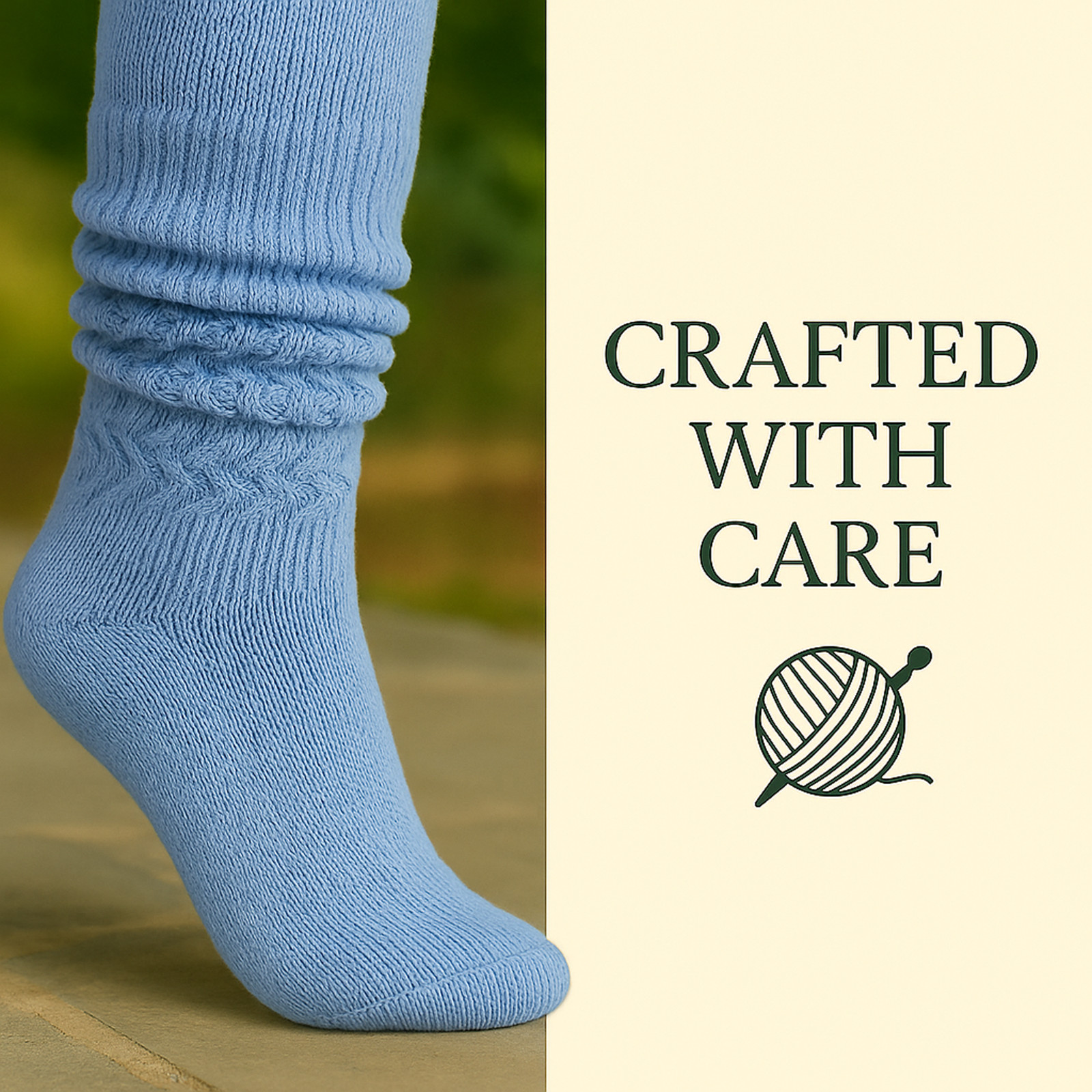 Light Blue Cotton Slouch Socks for Women Extra Heavy Extra Long