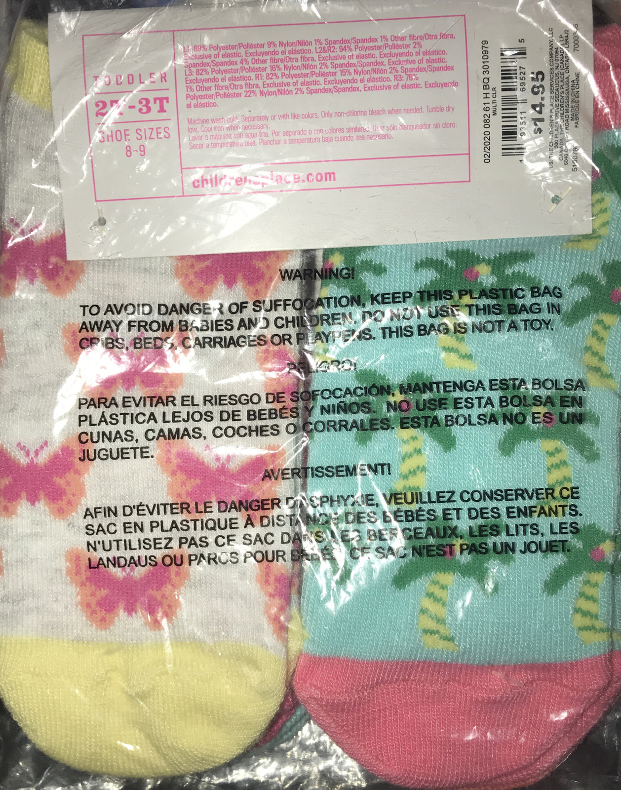 The childrens place girl ankle Socks 3t-4T 6 pairs tropical print sold multi new