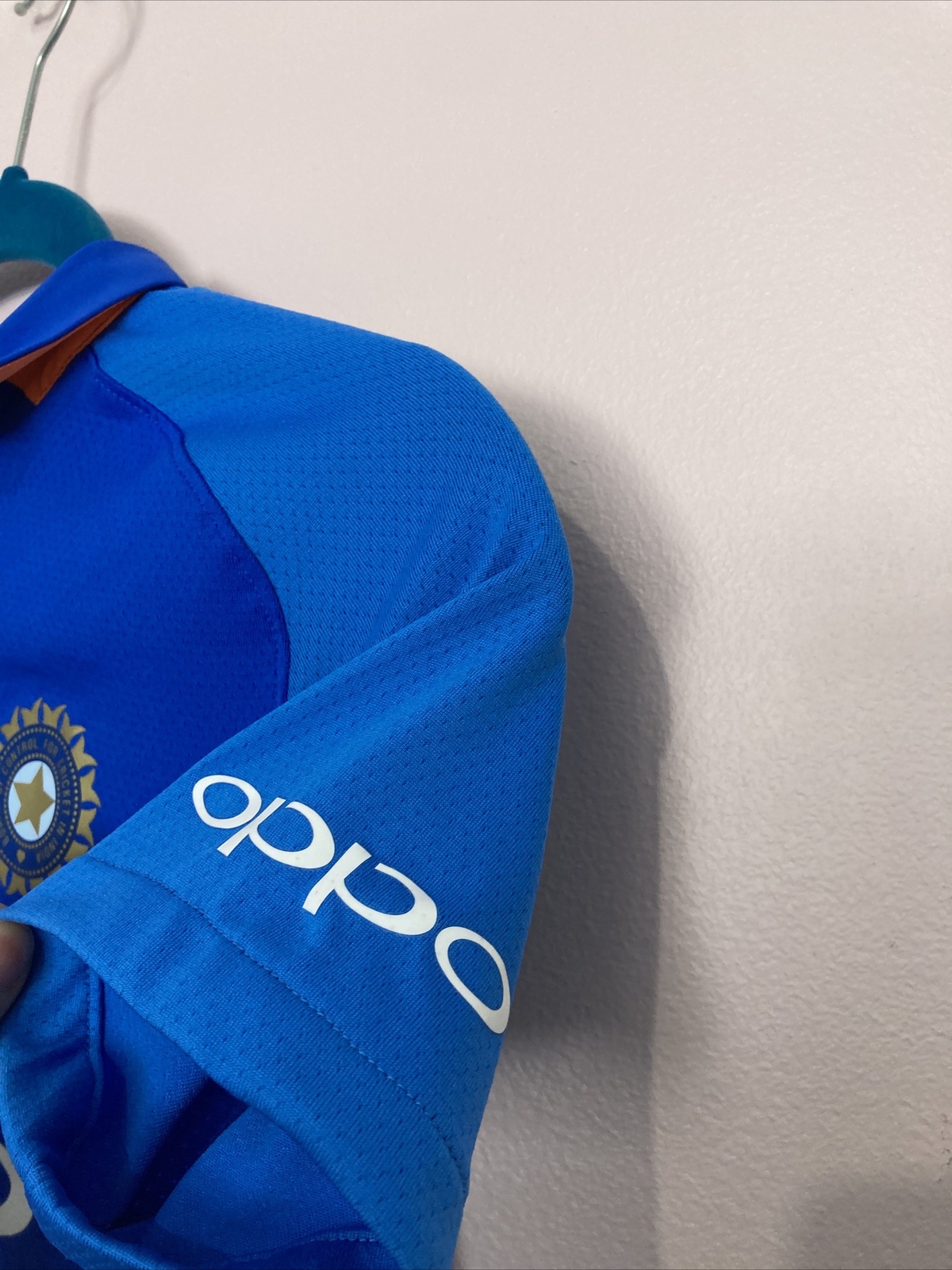 как выглядит Youth Nike Dri Fit 2018 Oppo India Blue Short Sleeve Cricket Jersey - Size Large фото
