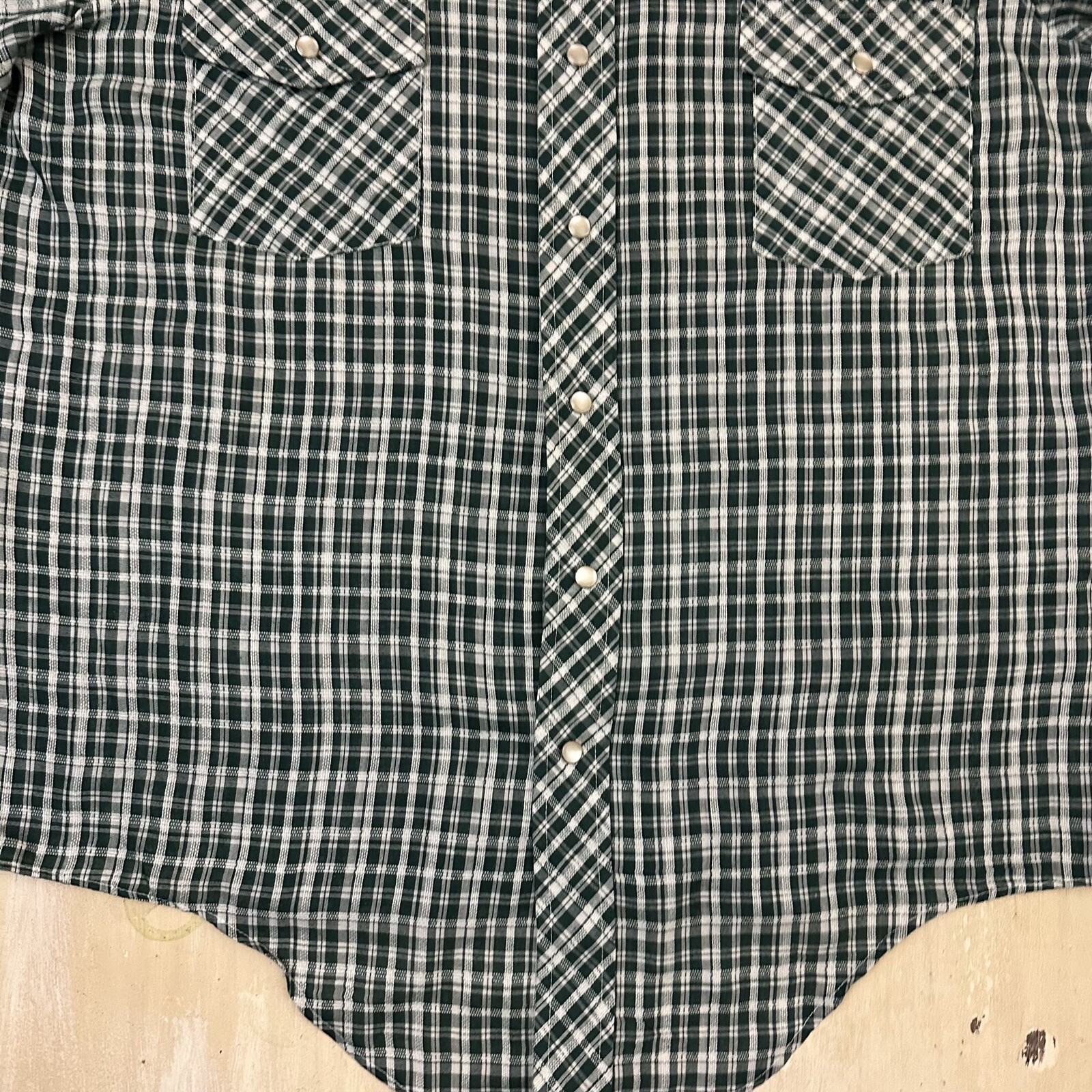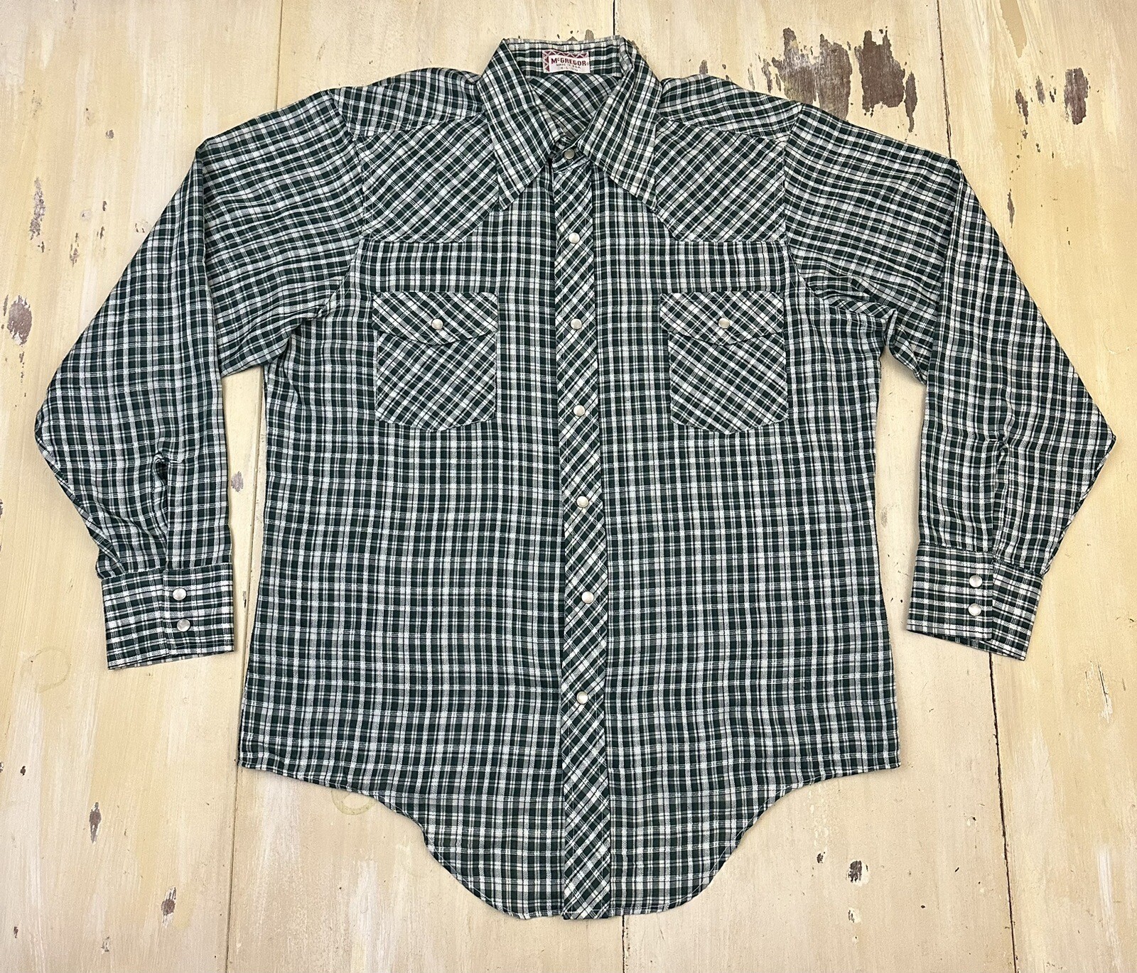 как выглядит MCGREGOR - Vtg 70s-80s Thin Soft Blue Plaid Pearl Snap Western Shirt, Mens LARGE фото