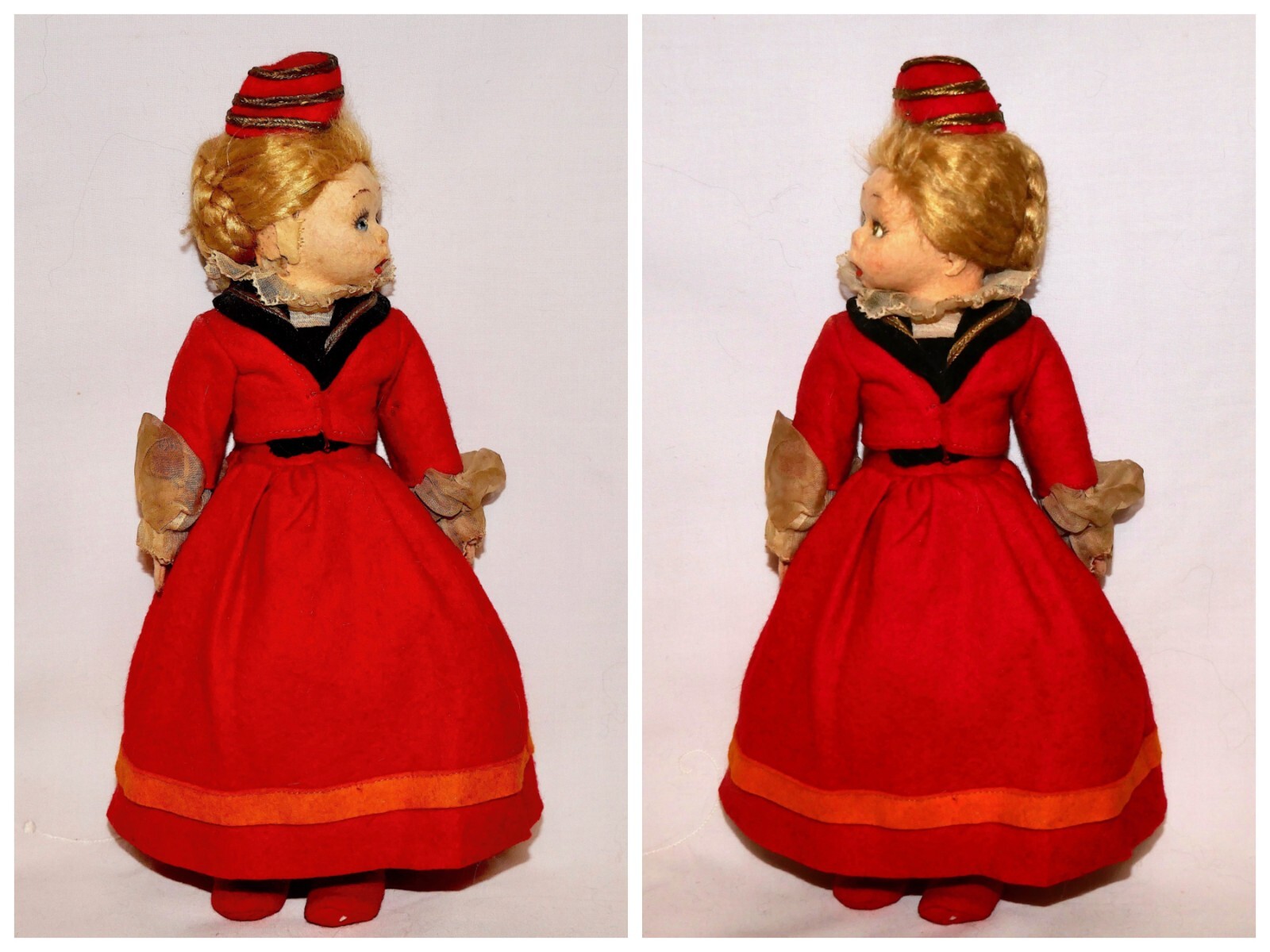 как выглядит 1940s Italian LENCI Mascotte Surprized Felt Doll 9" Floppy Legs Basket w/Flowers фото