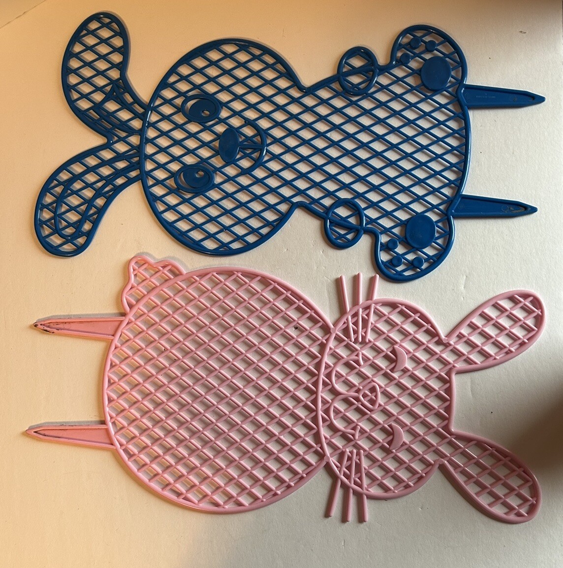 2 Plastic Easter Bunny 16 Yard Stakes Pink And Blue