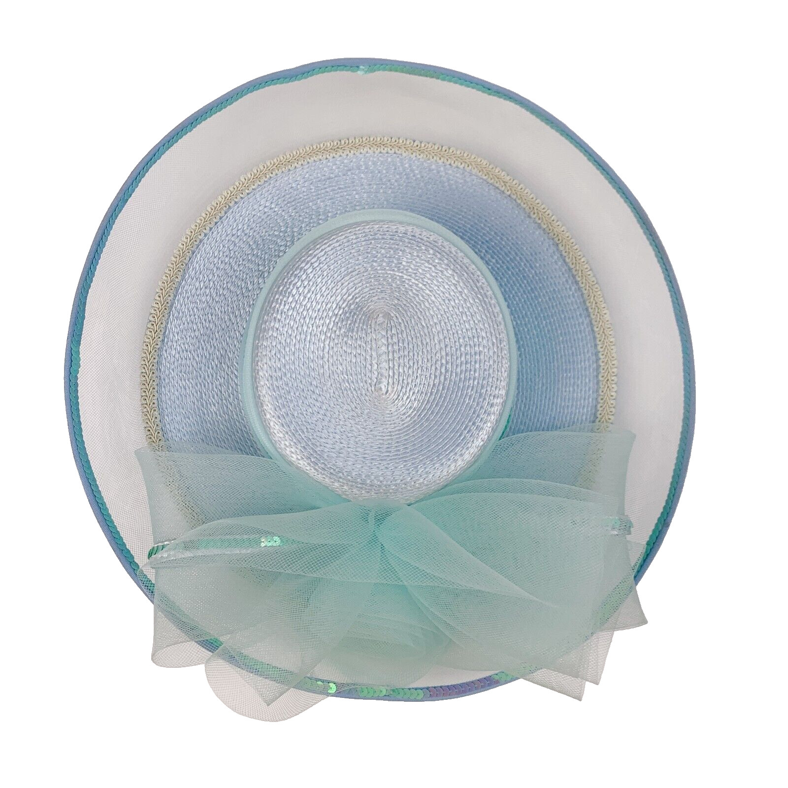 Vintage Polypropylene Fancy Tea Derby Church Hat Blue Sequin Tulle