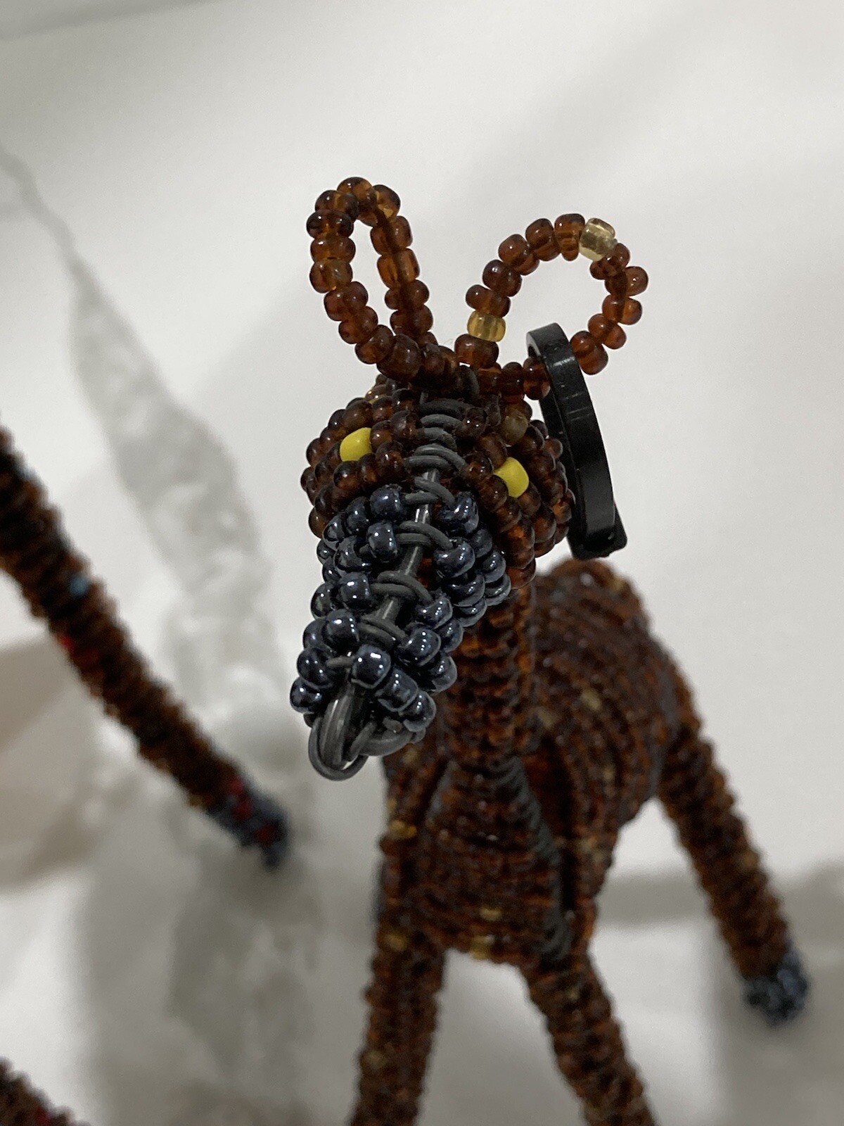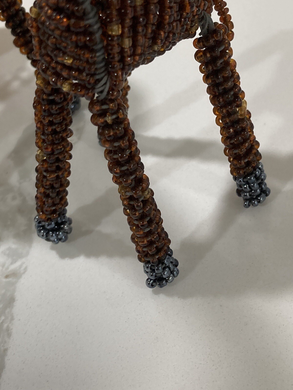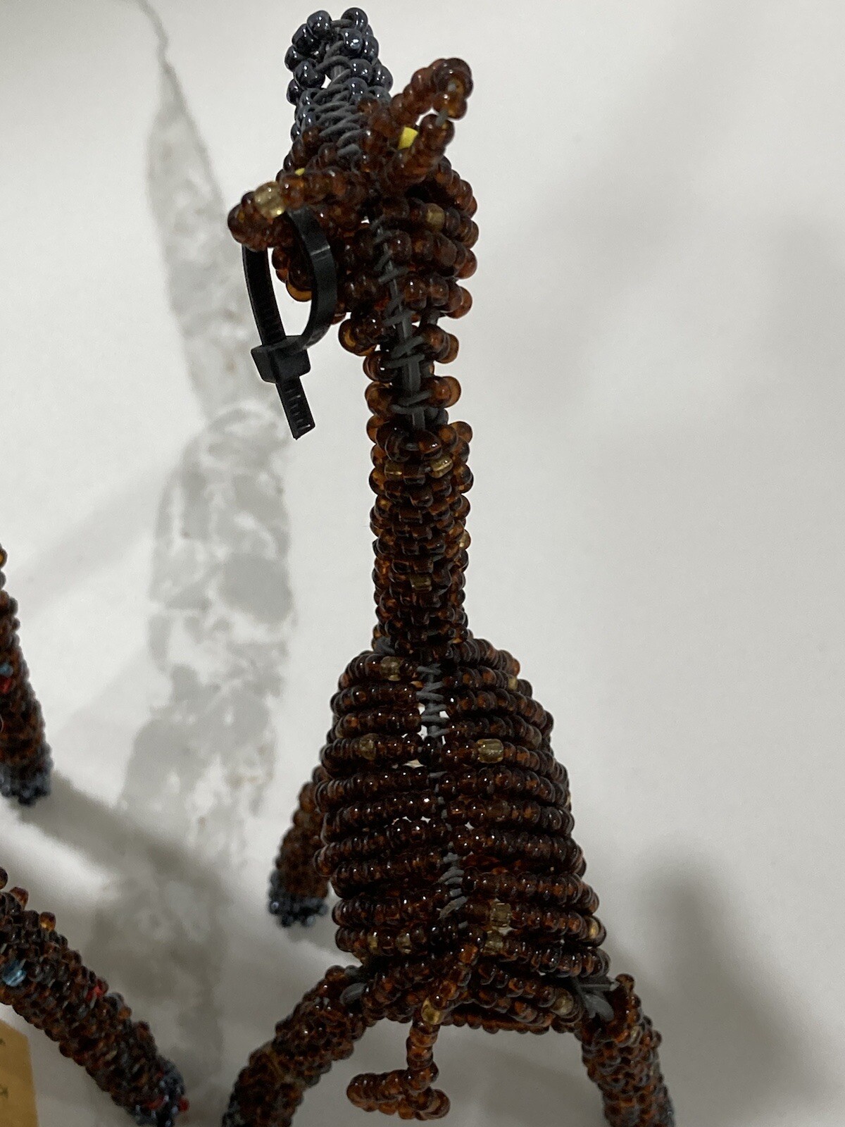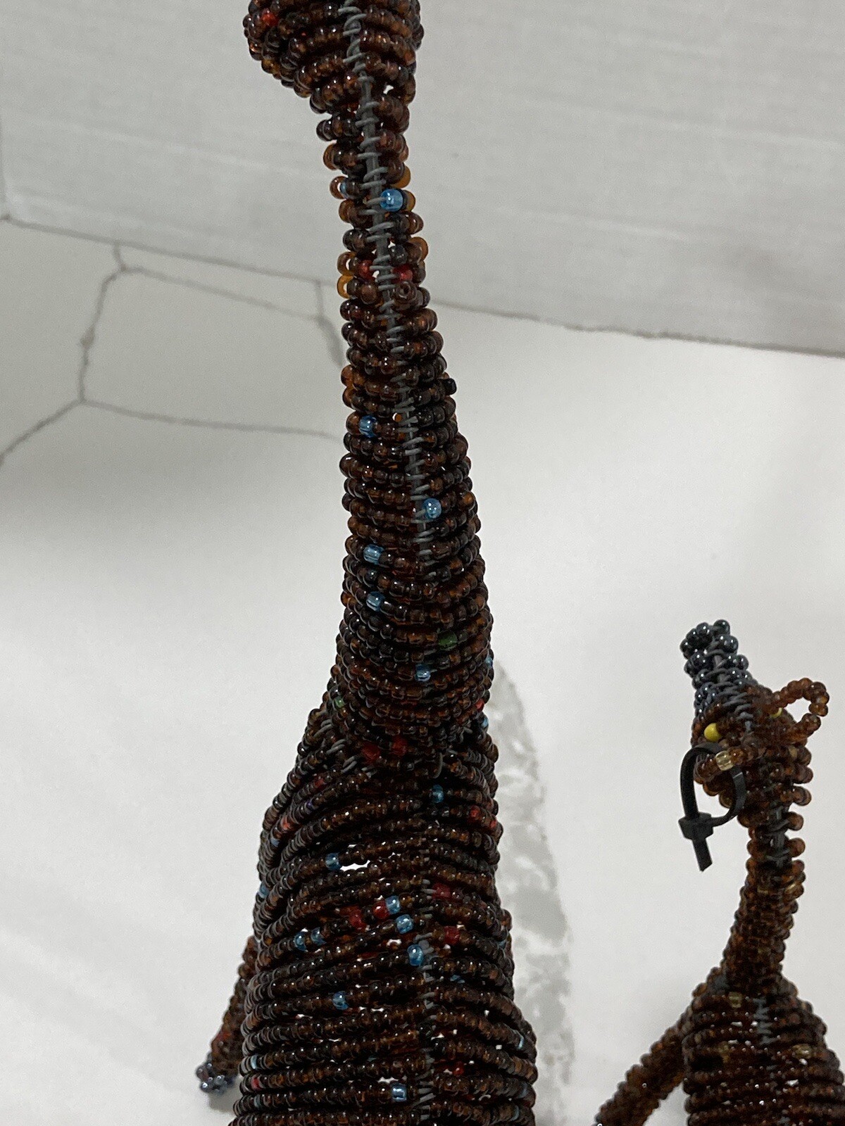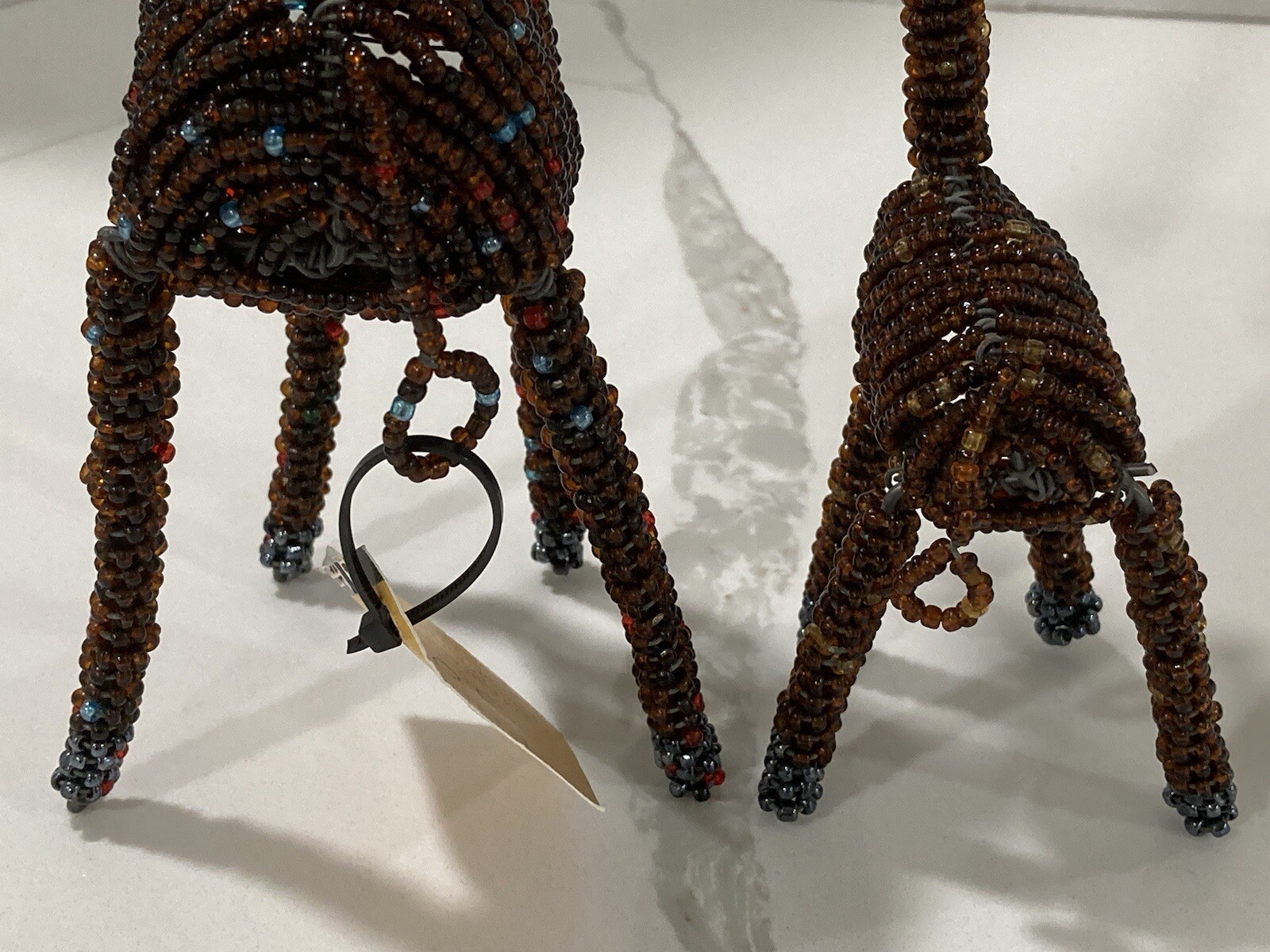 • Pair of Brown Beaded Giraffe Animals Display Ornaments African Art Mama Baby