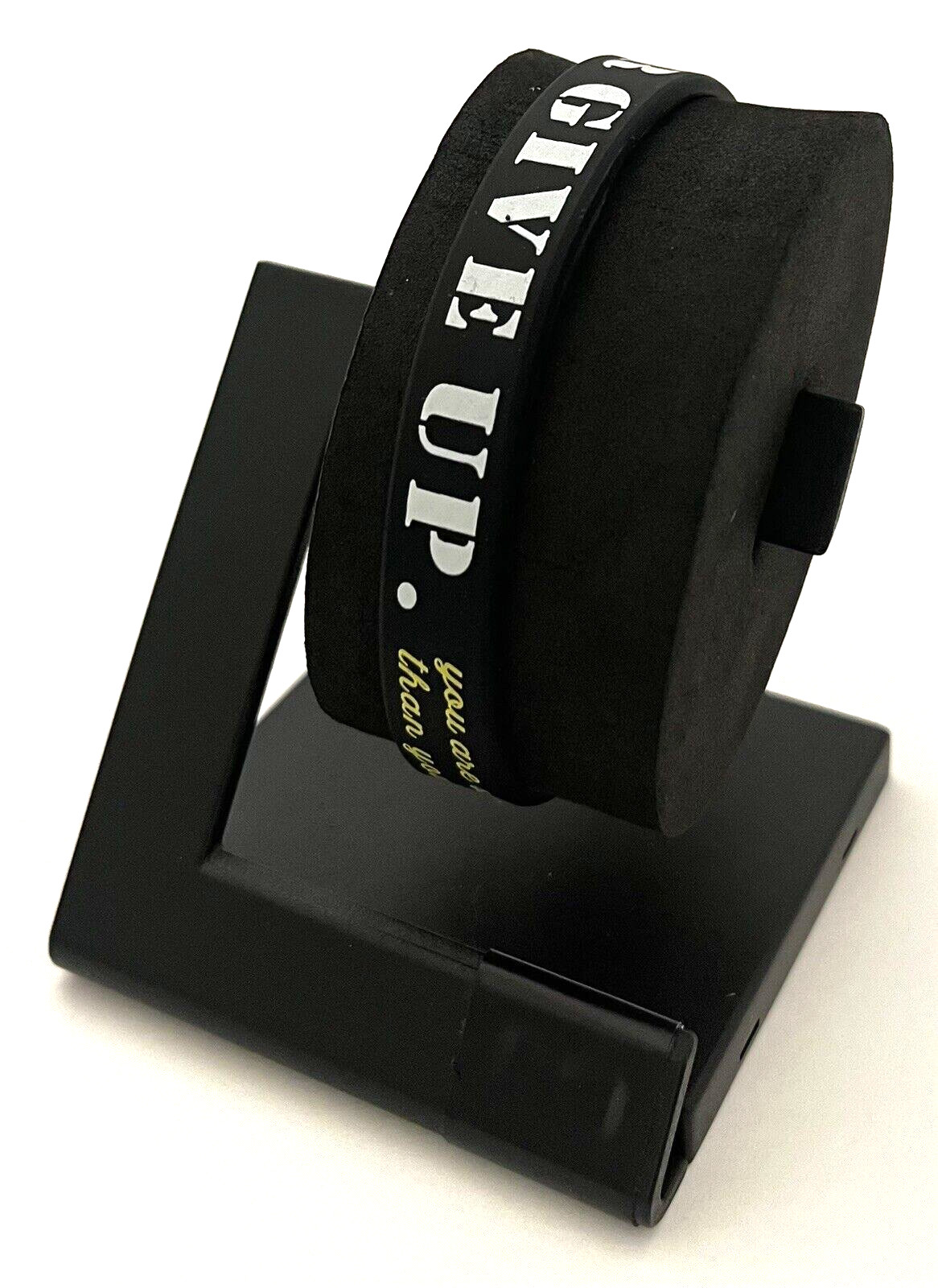 как выглядит Motivational NEVER GIVE UP black Rubber Wristband Bracelet фото