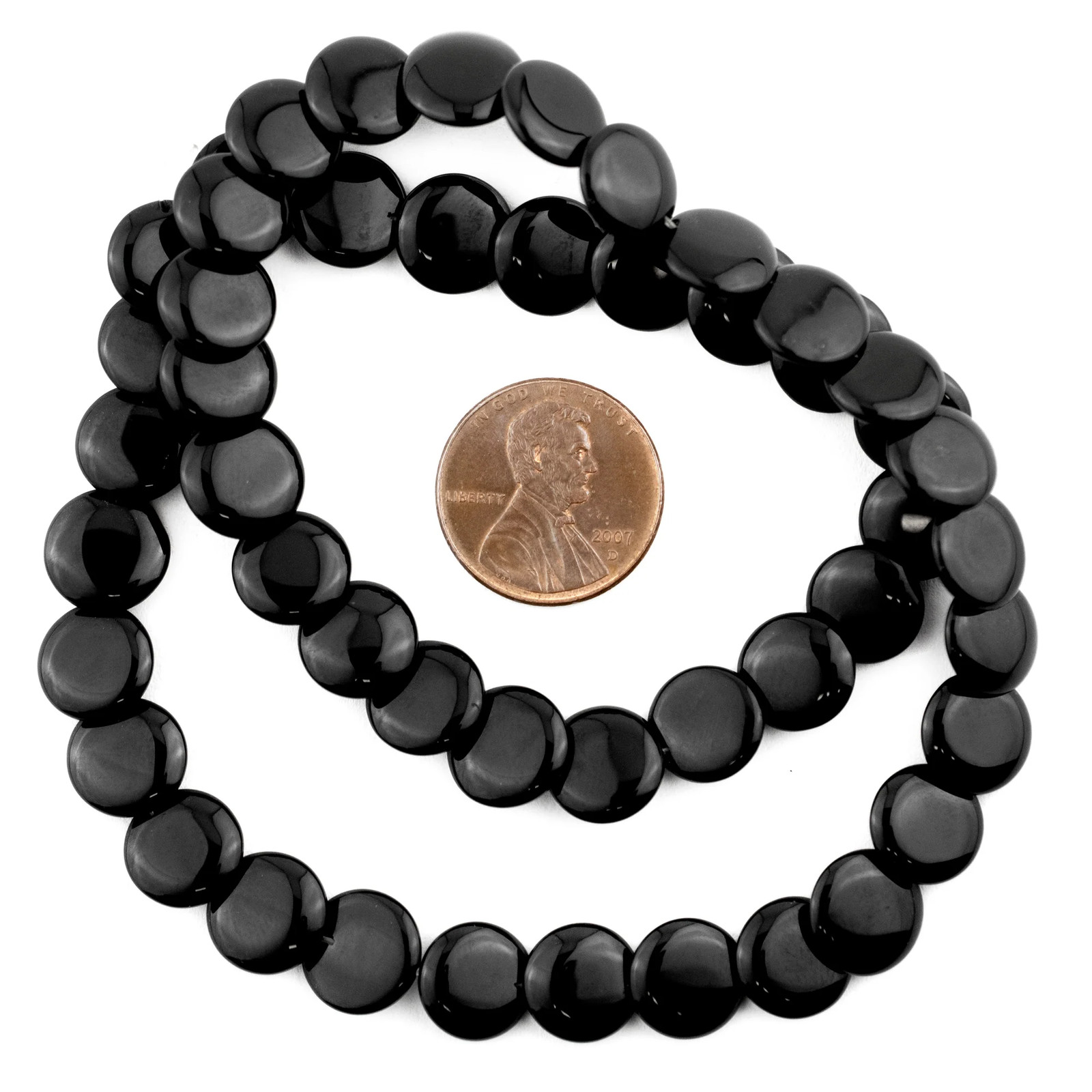 Flat Circular Onyx Beads 10mm Black Gemstone 15