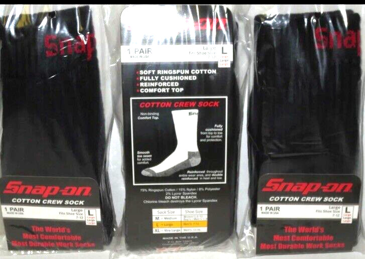 как выглядит SNAP ON TOOLS USA NEW 6 Pairs Crew Socks Mens BLACK LARGE FREE SHIP MADE IN USA фото