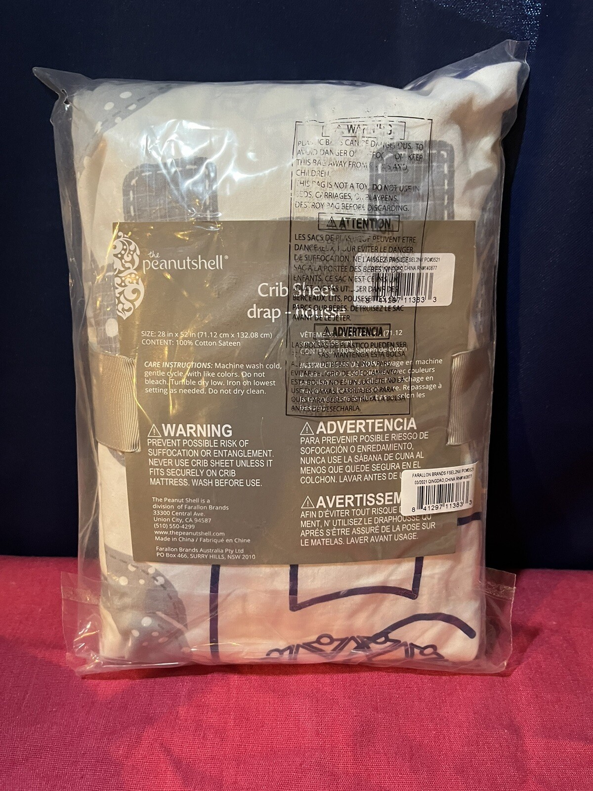 The Peanut Shell Grey Elephant Print 100 Cotton Crib Sheet New