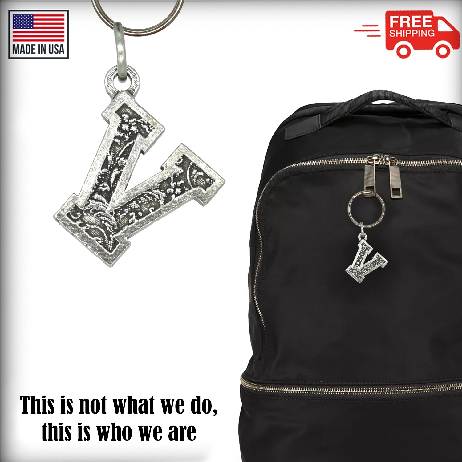 как выглядит Letter V Keychain, L022KC, 1 Inch, Alphabet, Initial, Personalized, Gift, Metal фото