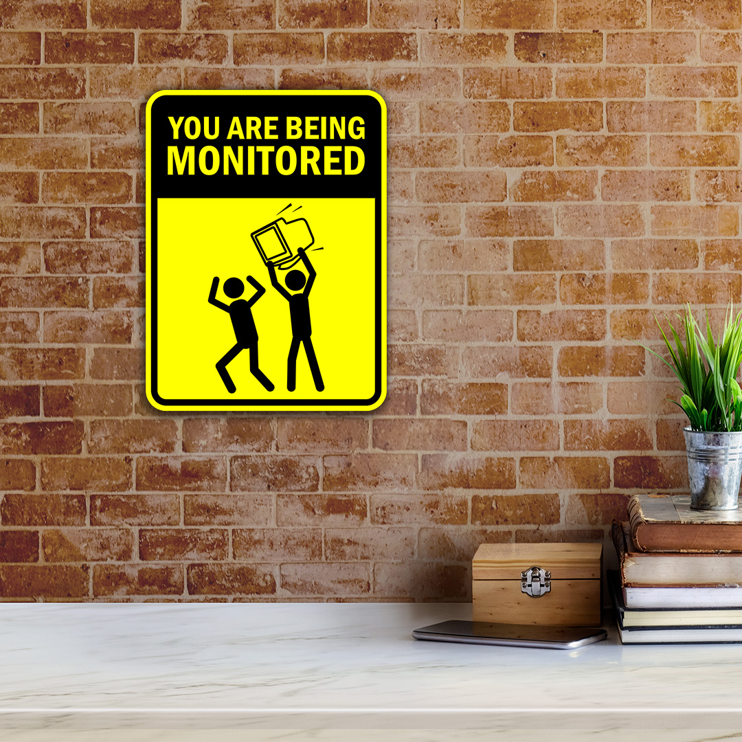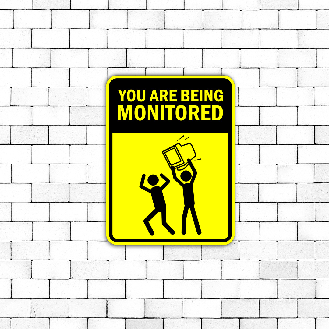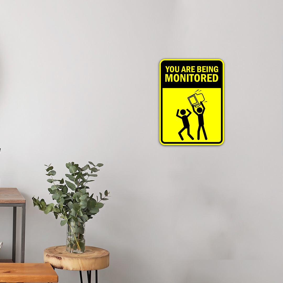 Portrait Round Plus You Are Being Monitored Door or Wall Sign