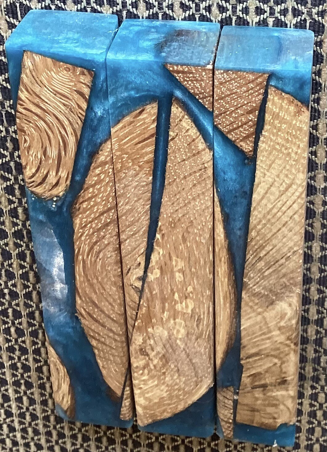 3 Pen Blanks Hybrid White Oak Burl Resin Blue Charcoal