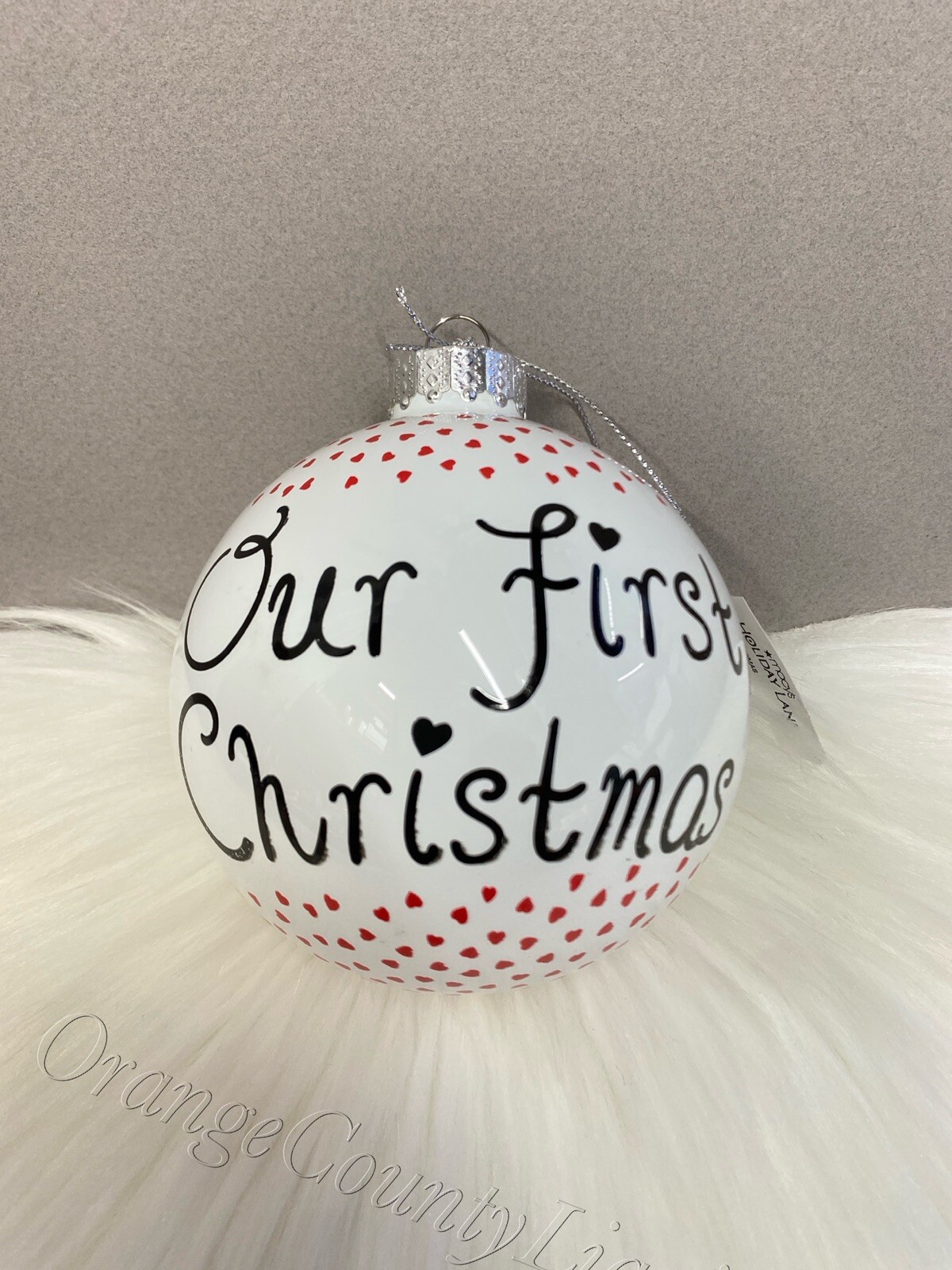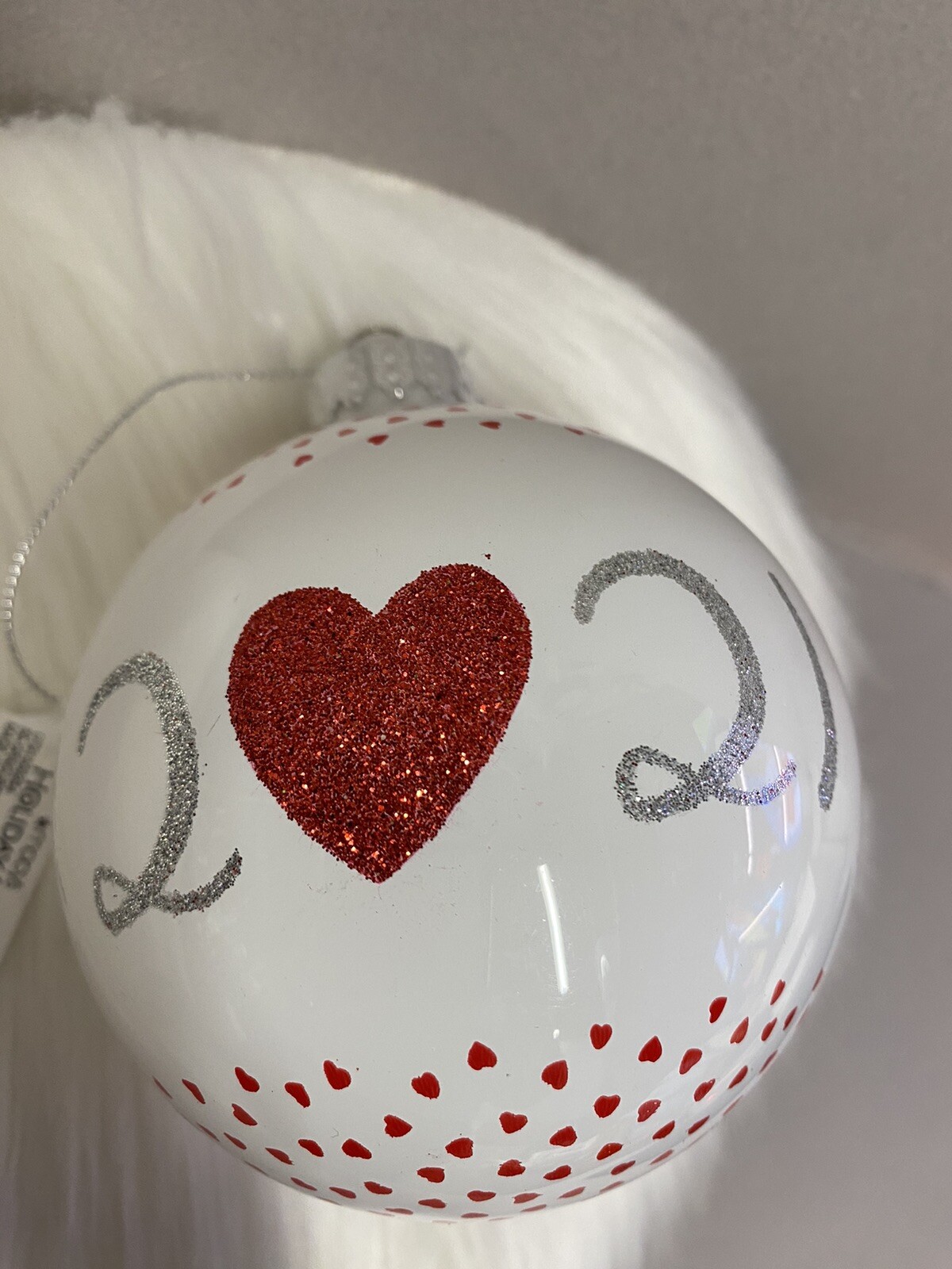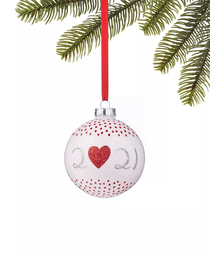 как выглядит Holiday Lane Our First Christmas 2021 Ball Ornament Glass Tree White Red Heart фото