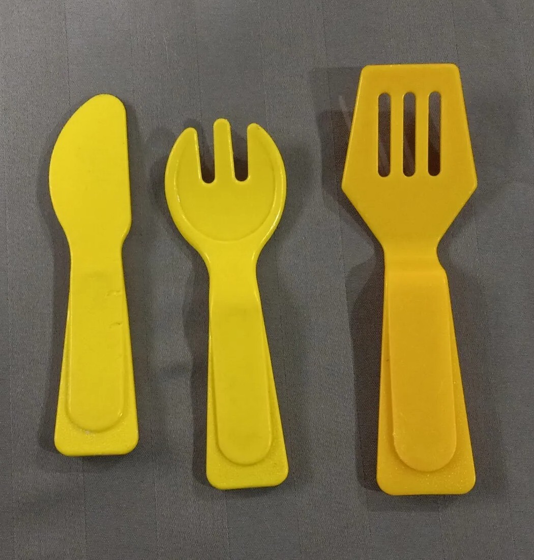 Vintage Fisher Price Fun with Food dishes playset 13 pieces plates pan cups fork