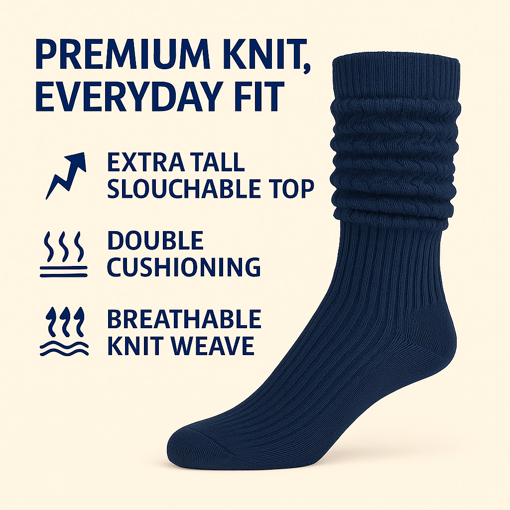 1 Pair Slouch Socks for Women Shoe Size 5-10 Cotton Extra Heavy and Extra Long