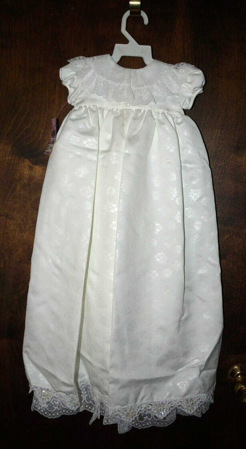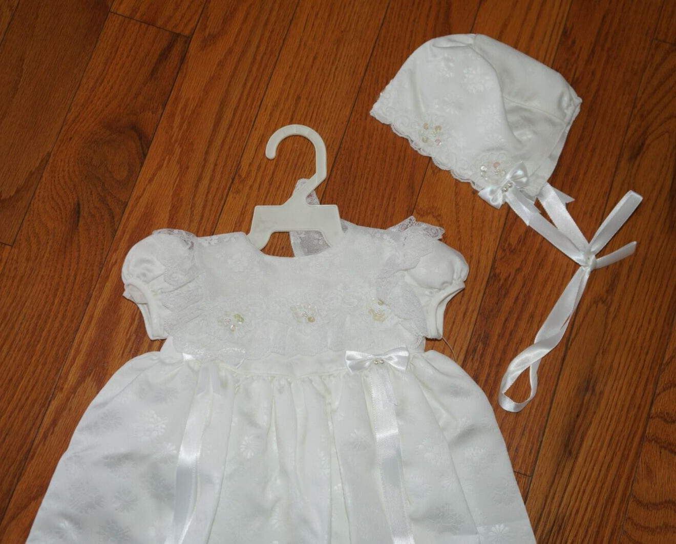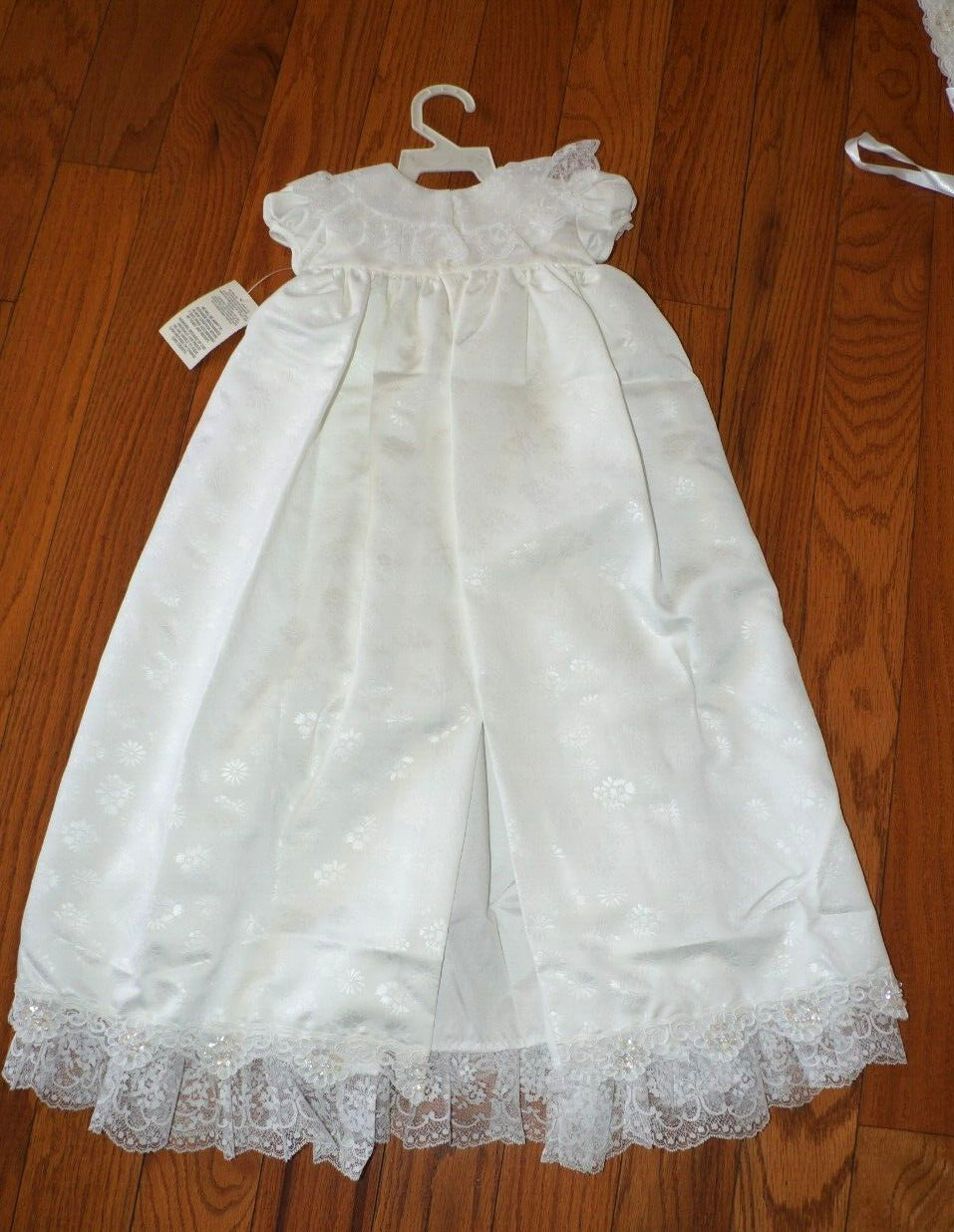 Char-Lena White Lace Christening Baptism Gown with Bonnet Size 3 Month NWT