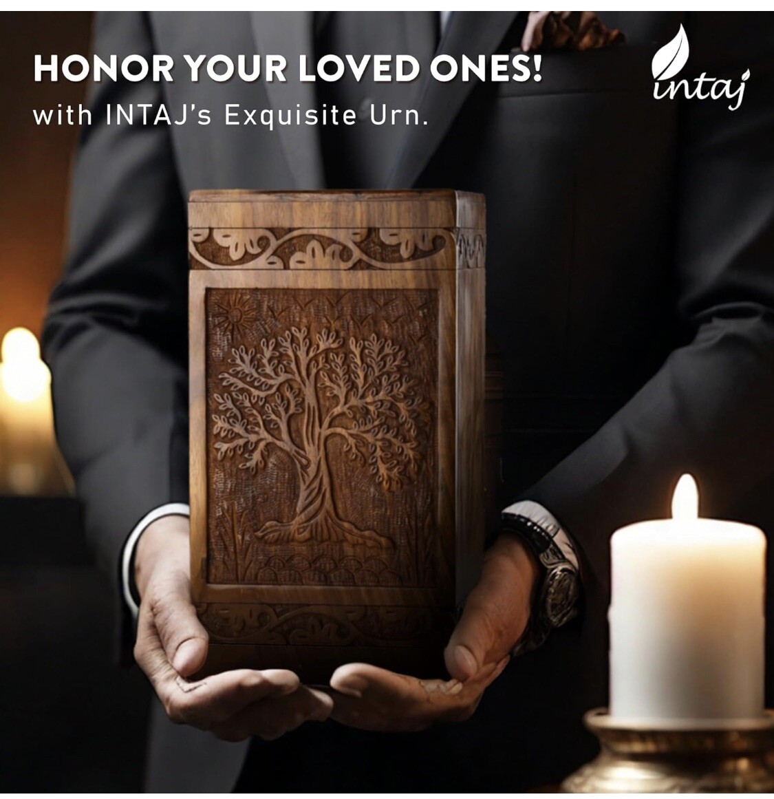• Handmade Rosewood Cremation Urn Human Ashes Tree of Life Wooden Urns L 250lbs