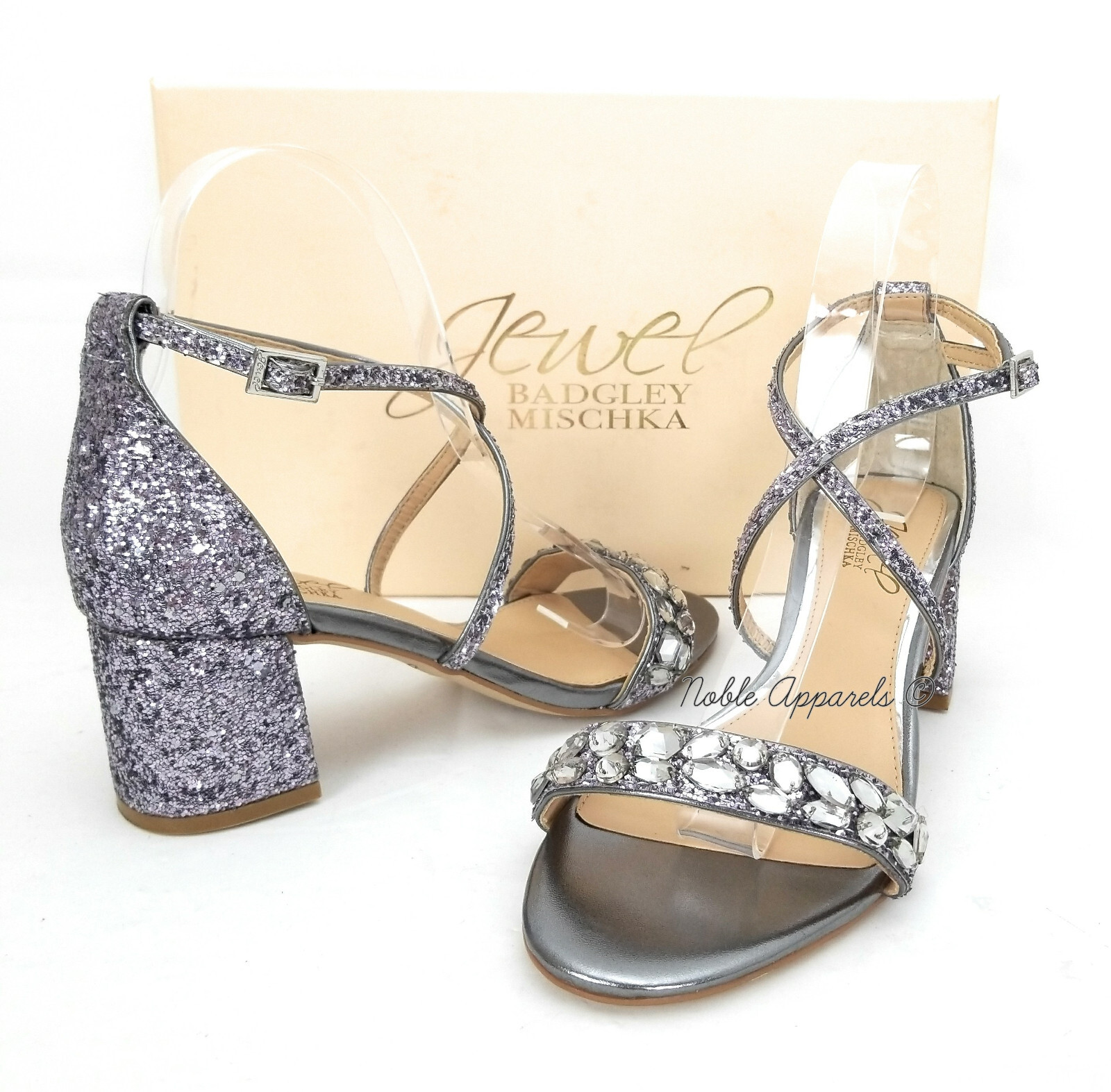 как выглядит JEWEL BADGLEY MISCHKA Womens Claudia Block Heel Sandals Smoke Glitter фото
