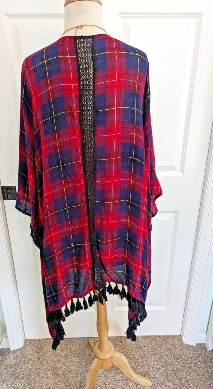 как выглядит Kori America Womens Red/Blue - Size S -Fringe Kimono Beach Wrap Cardigan Duster фото