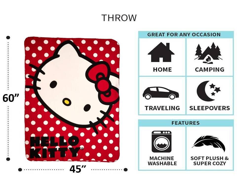 Hello Kitty Polka Dot Kitty Kids 45 x 60 Fleece Throw Blanket-AB008YNZXLQ8