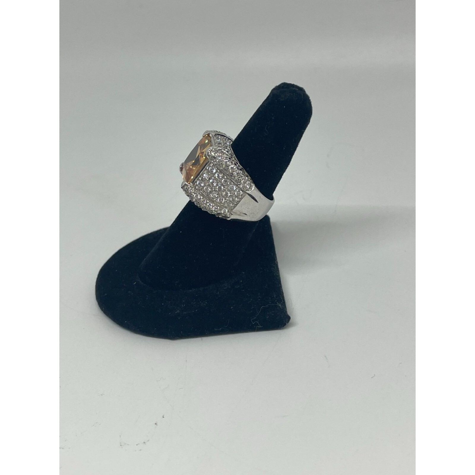 925 Sterling Silver RP Citrine and CZ Princess Cut Ring Size 6.5