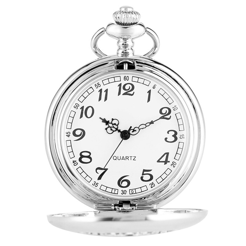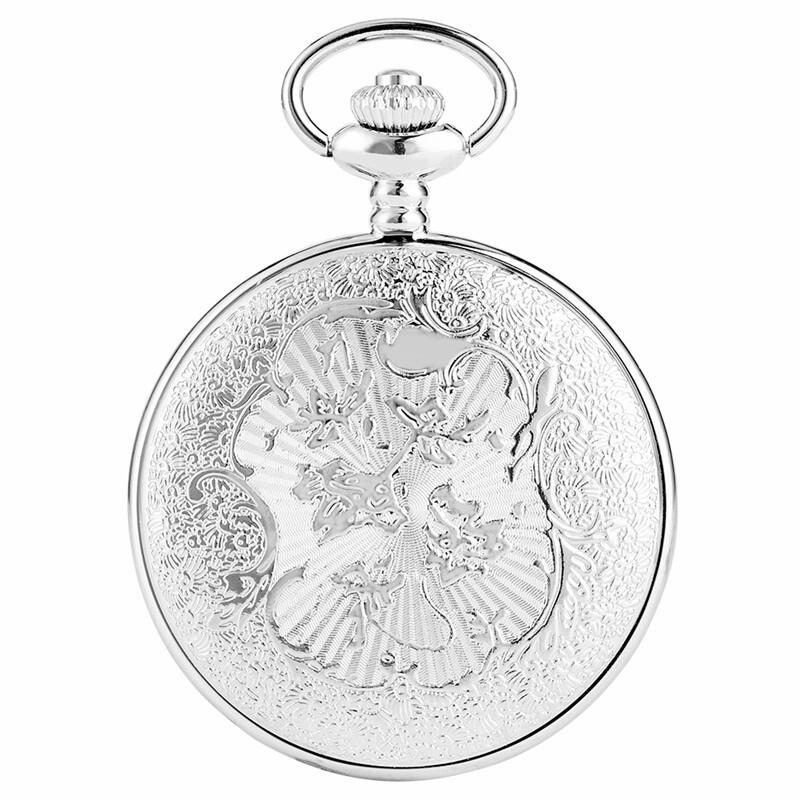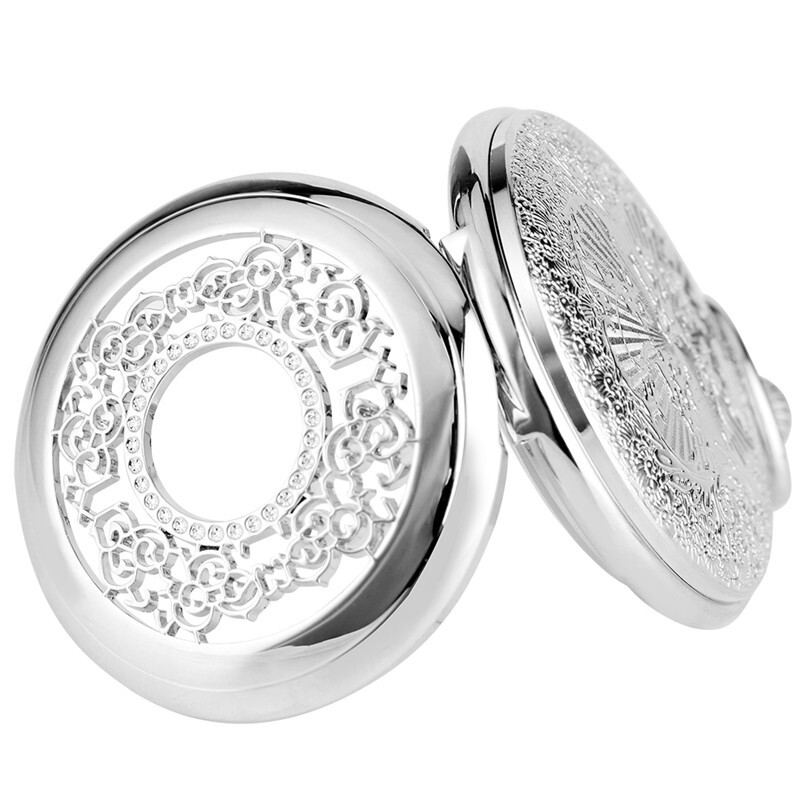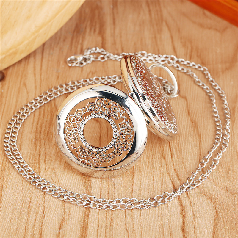Classic Silver Hollow Tone Women Lady Quartz Pocket Watch Necklace Pendant Chain