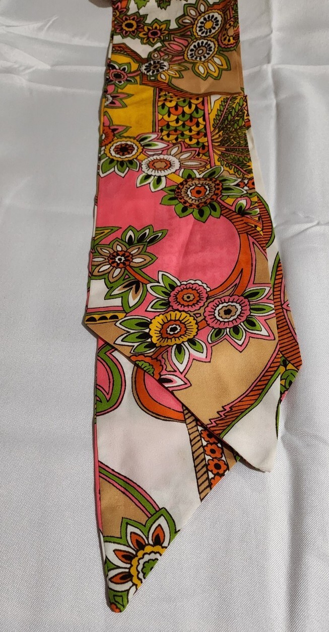 как выглядит Vintage Lady Heritage Scarf Retro Pink Green Yellow Floral Print 62" Long фото