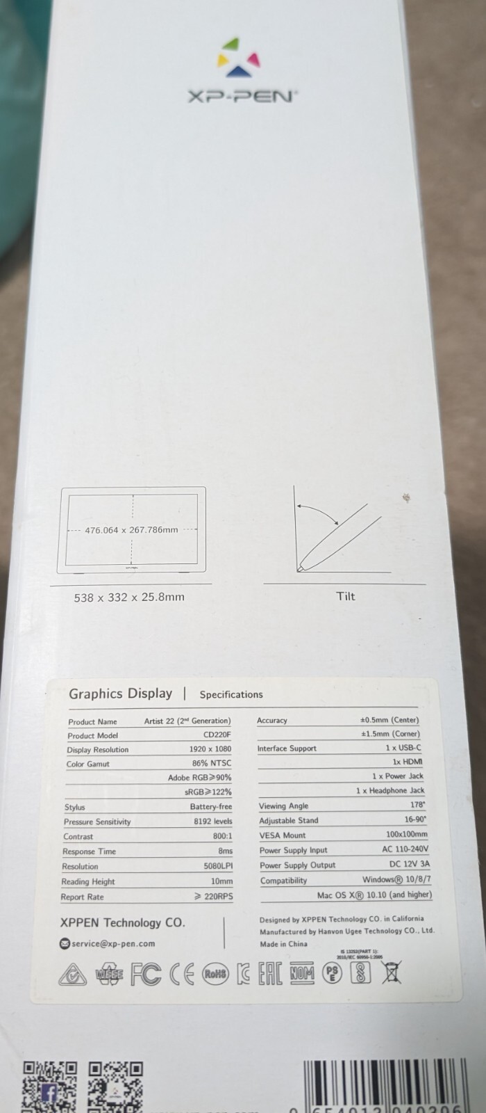 как выглядит XP-Pen Artist 22 2nd Gen Drawing Tablet - 122 sRGB with Tilt Function Battery фото