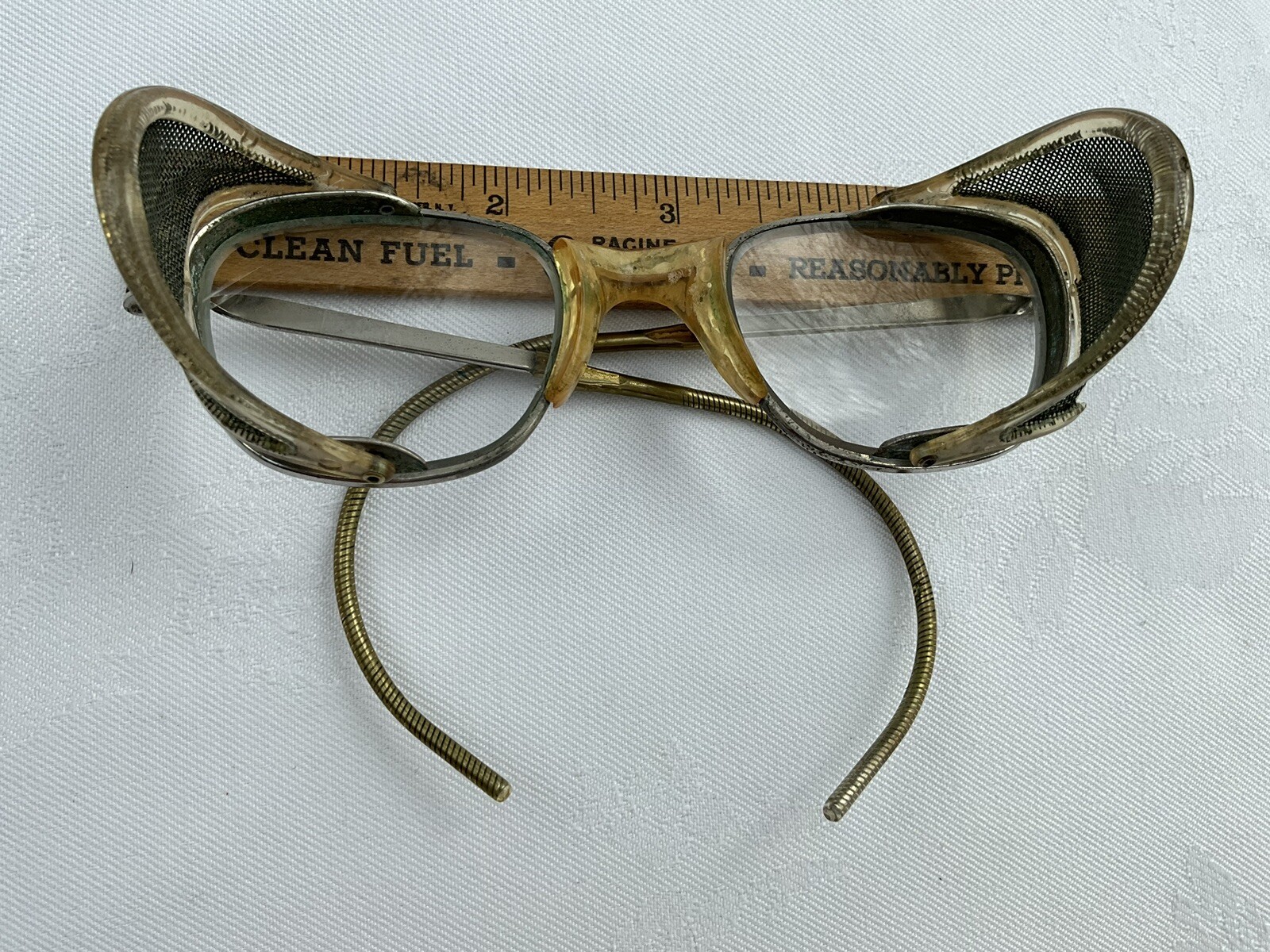 Vintage Mesh Sides All Metal Folding Safety Glasses Steampunk