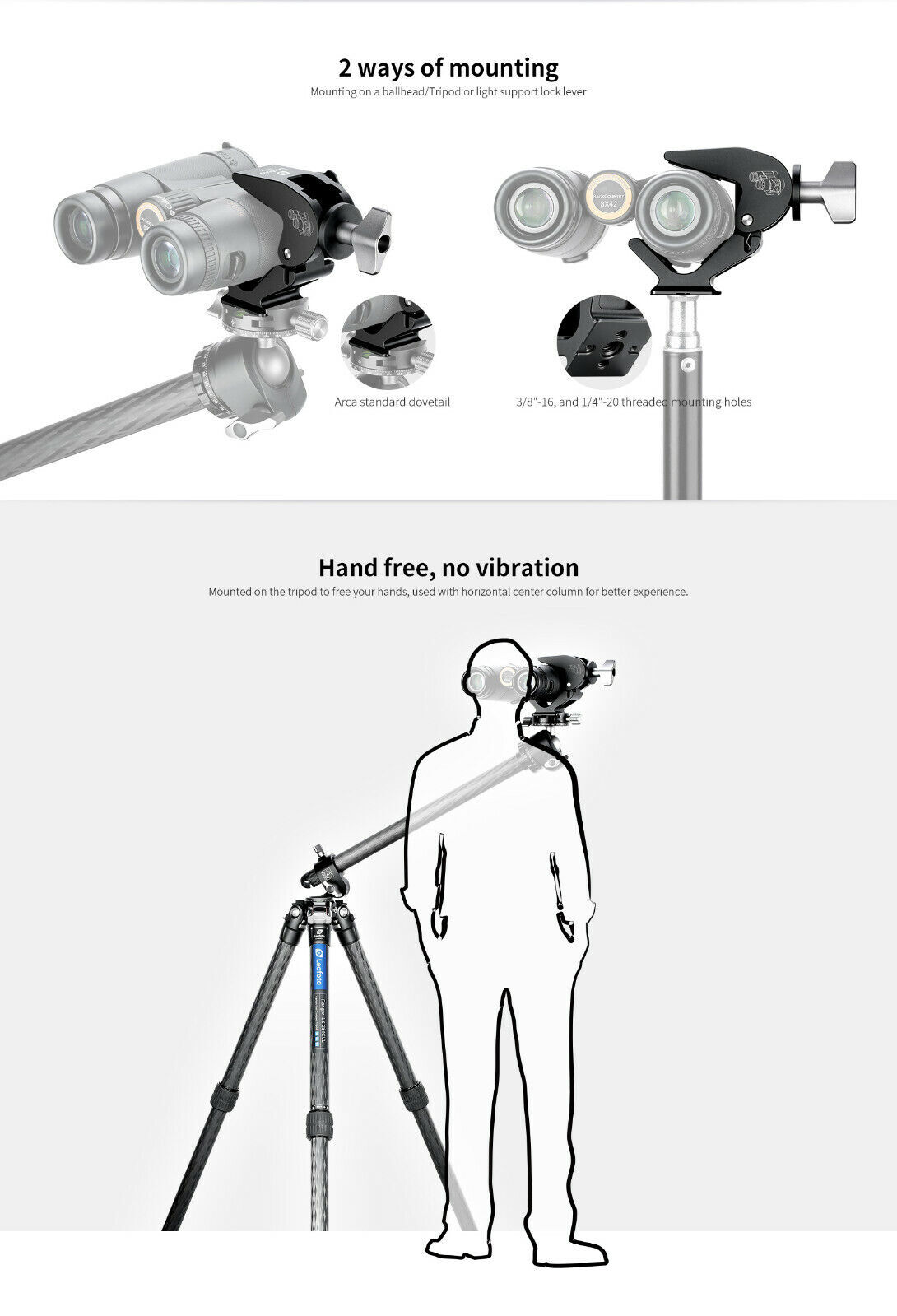 Leofoto BC-02 Binocular Adapter/ARCA Dovetail For Diameter 28-60mm