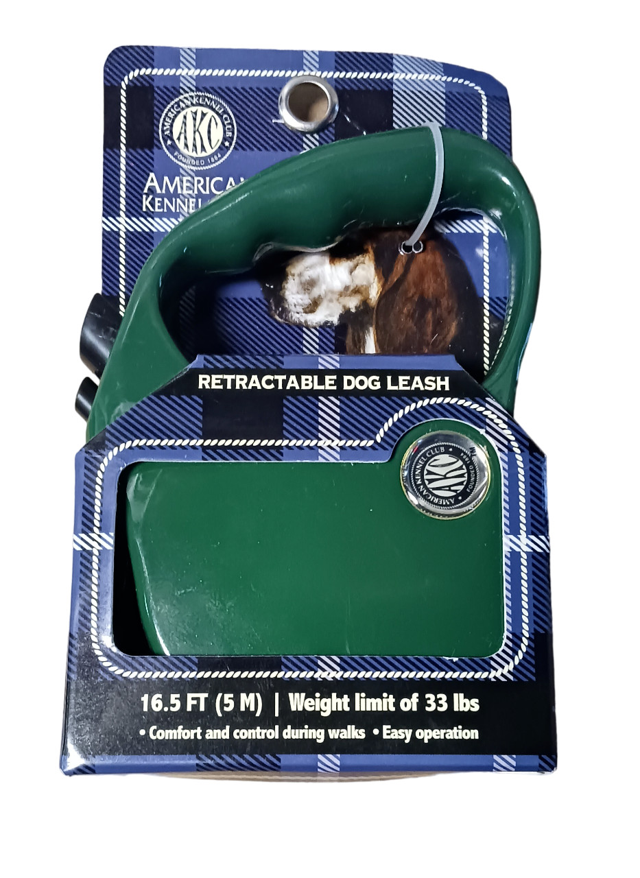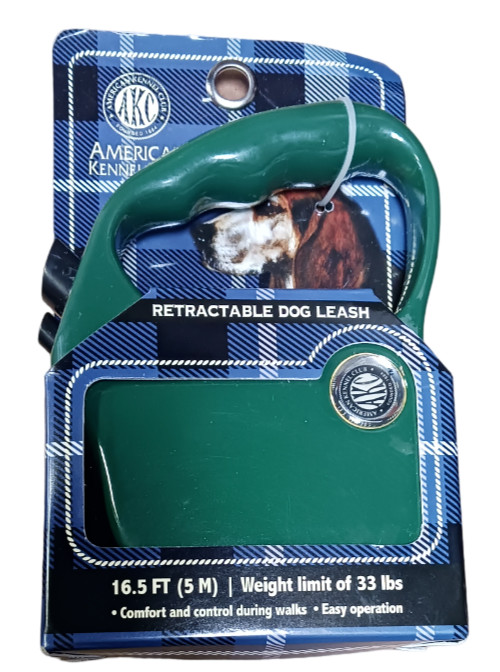 American Kennel Club Retractable Dog Leash 16.5 ft. Weight Limit 33 lbs. Green