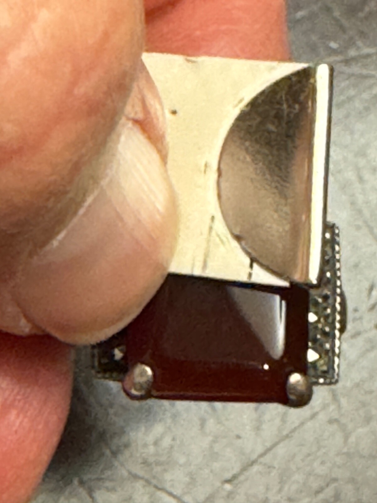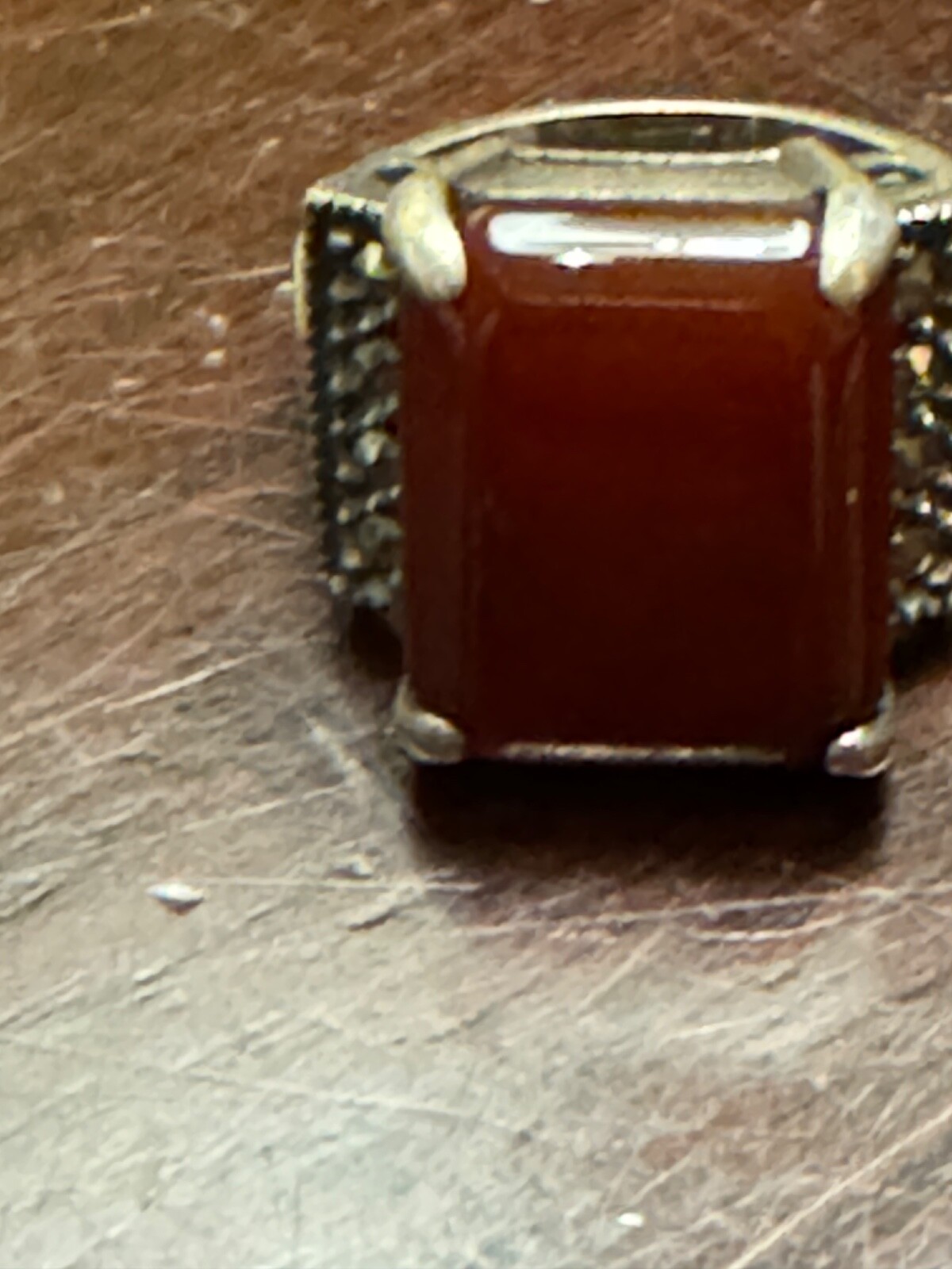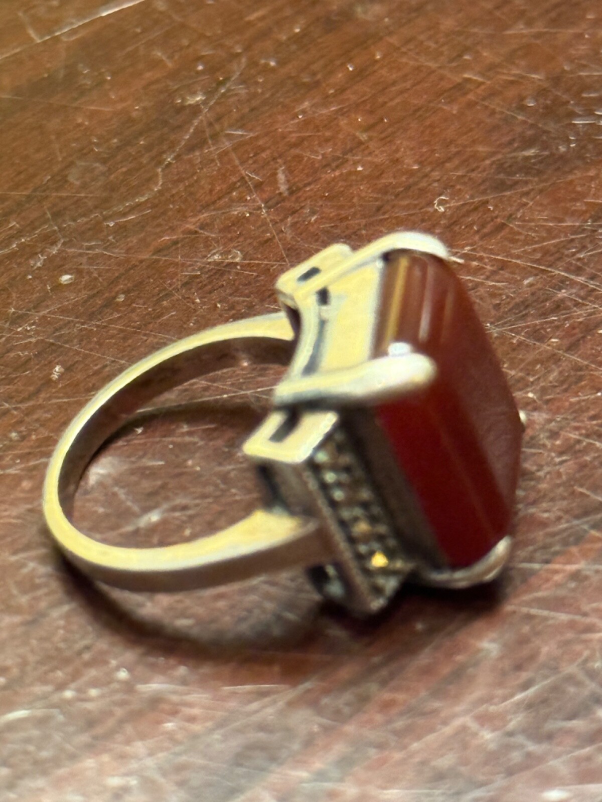 как выглядит Vintage Carnelian Marcasite Sterling Silver Band Ring Sz 6.25 фото