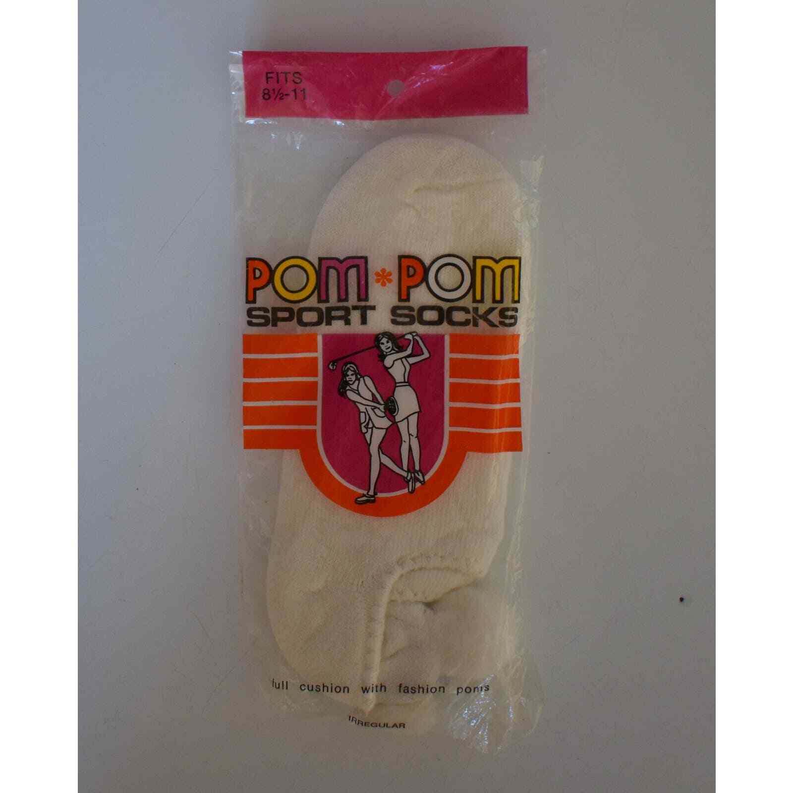 как выглядит Vintage 70s Pom Pom Ankle Sport Socks - Size 8 1/2 - 11 фото