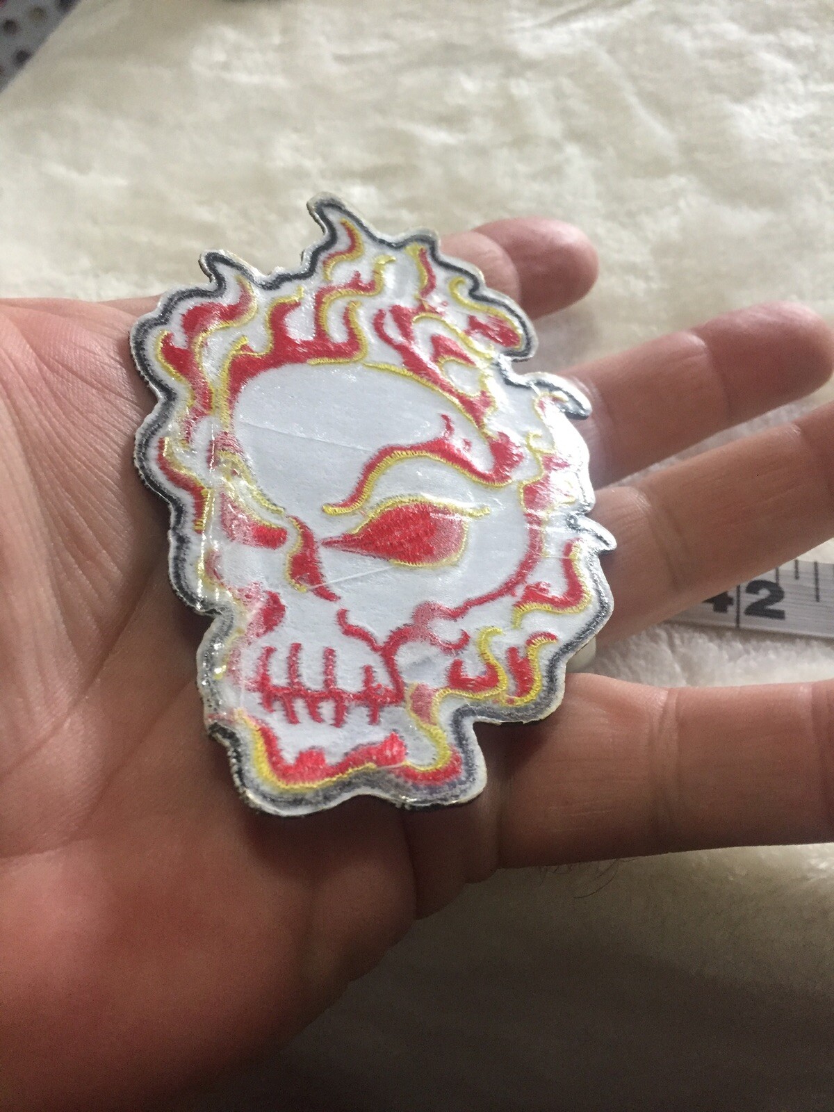 как выглядит Demon Skull On Fire Black Red Yellow Embroidered Iron On Patch New фото