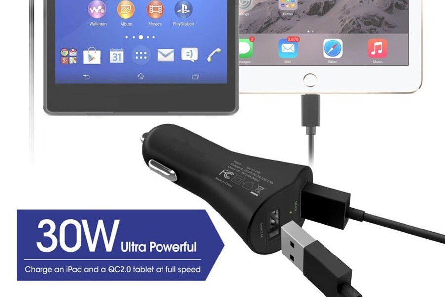 как выглядит 30W Fast Car Charger 2-Port USB Power Adapter DC Socket Quick Charge for Tablets фото