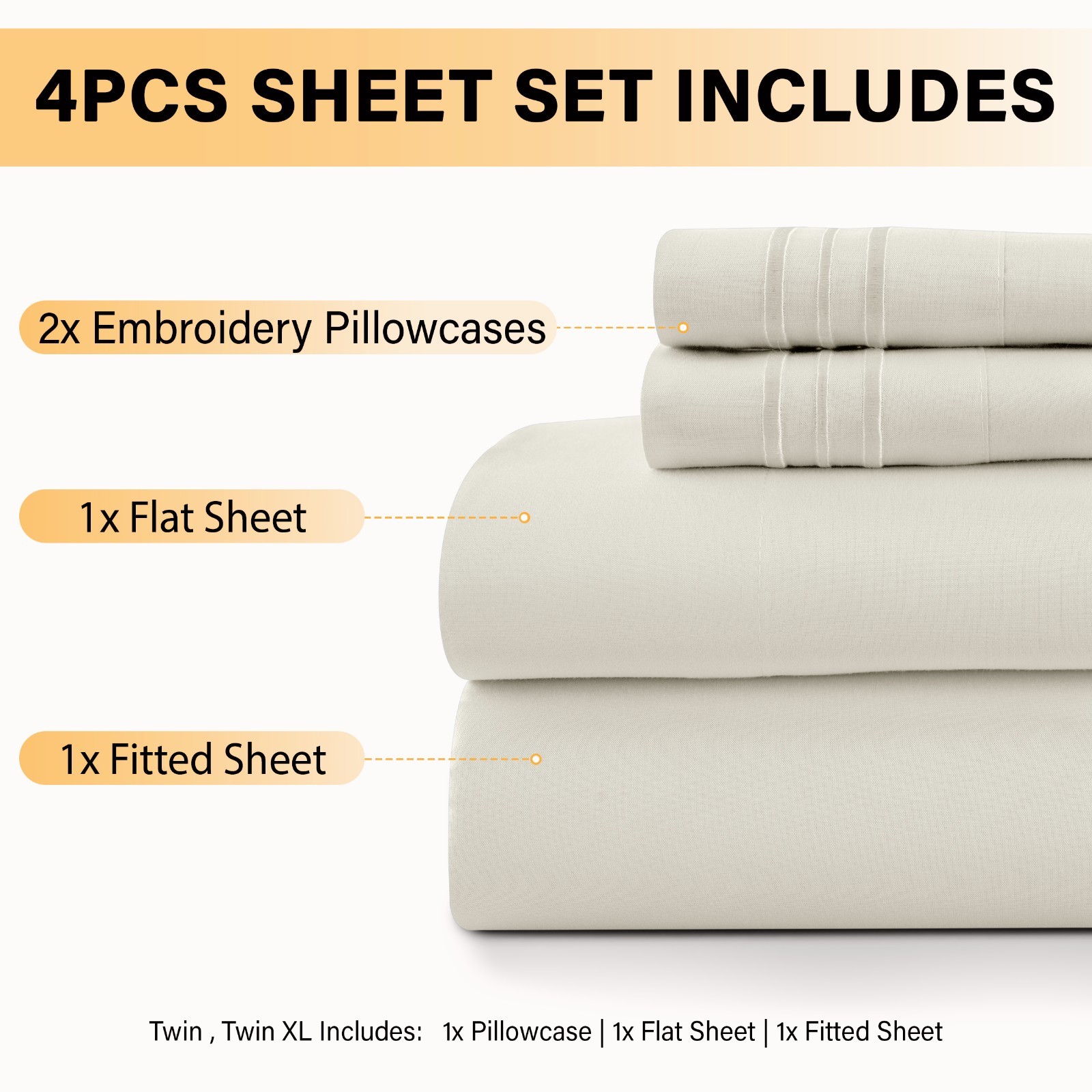 4 Piece Premium Bed Sheet Set Hotel Luxury Ultra Soft Deep Pocket Sheets Set