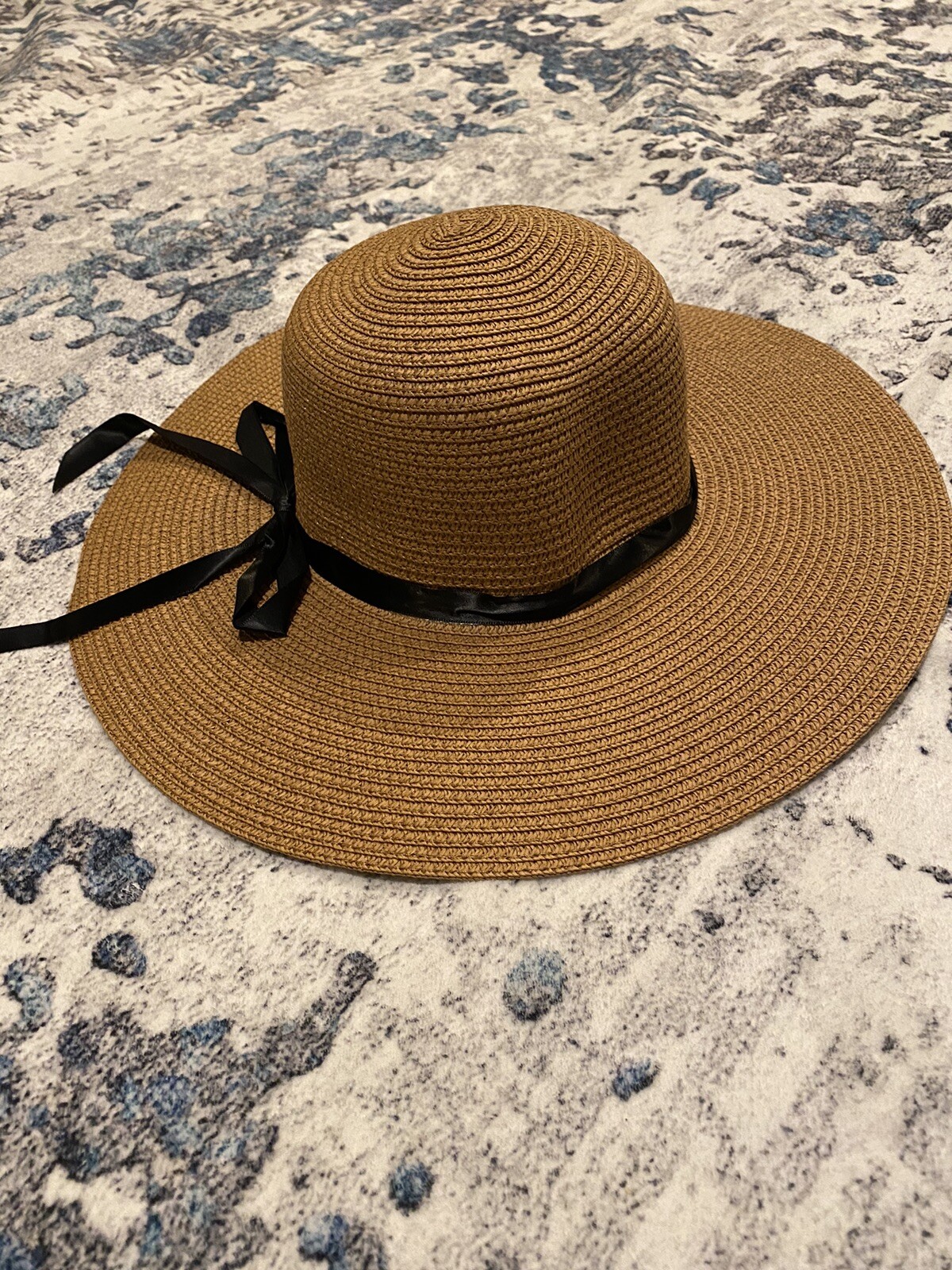 как выглядит Ladies Sun Hat Straw Floppy Beach Wide Brim Black Ribbon фото
