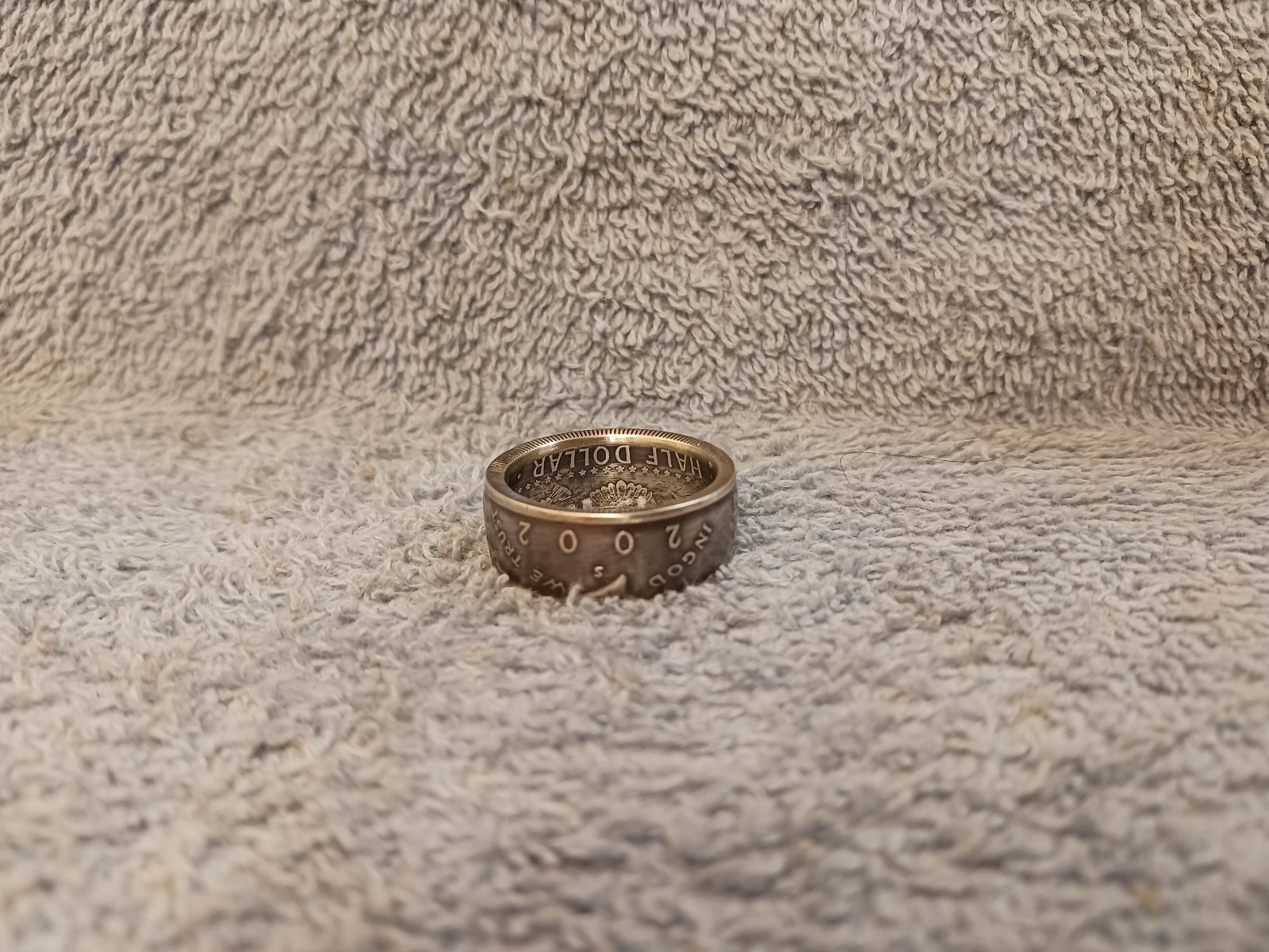 как выглядит 2002 90 Silver Kennedy Half Dollars size 11 coin ring handmade фото