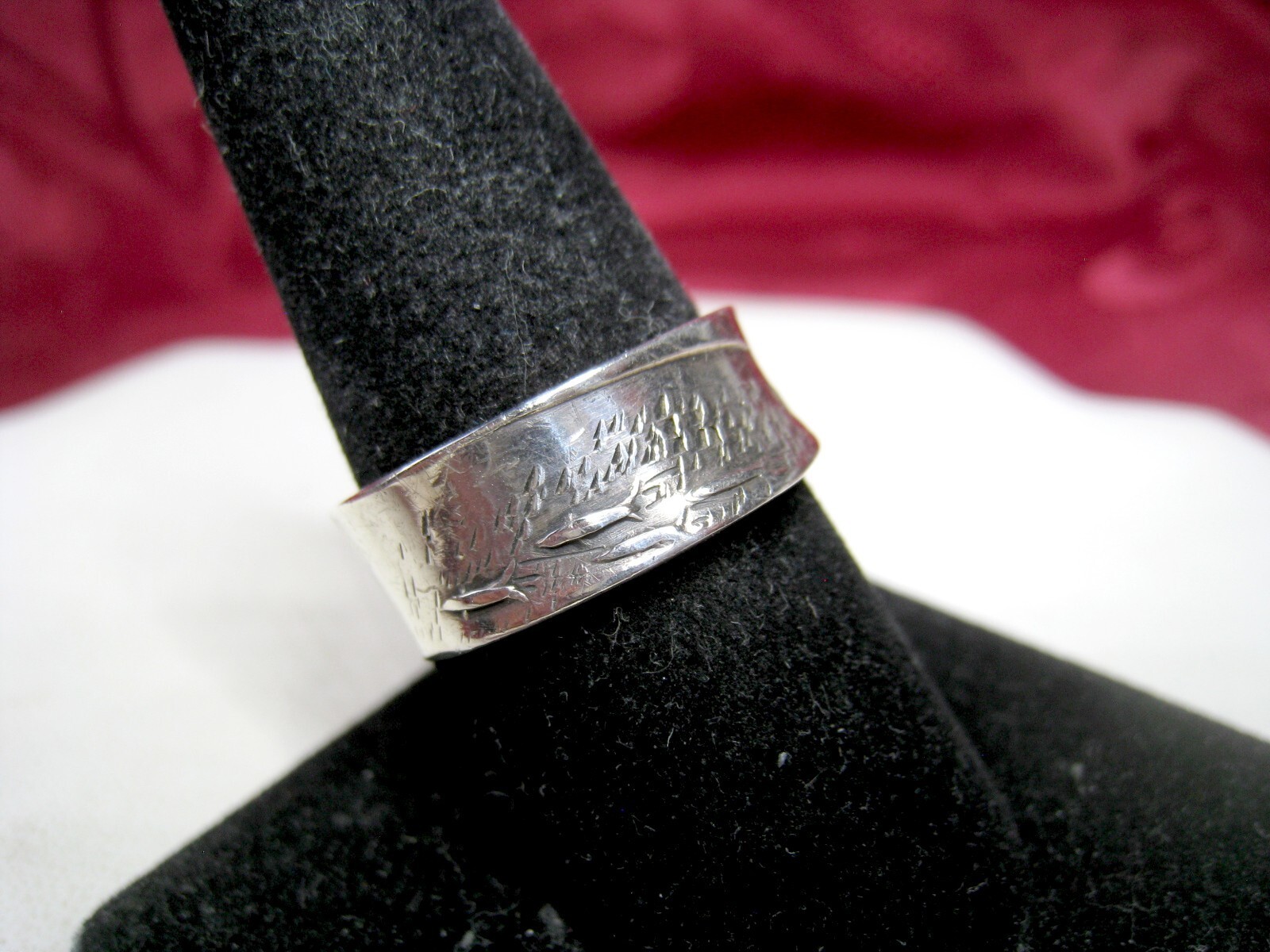 как выглядит VINTAGE 925 STERLING SILVER SWIMMING FISH WIDE BAND RING SIZE 9.25 фото