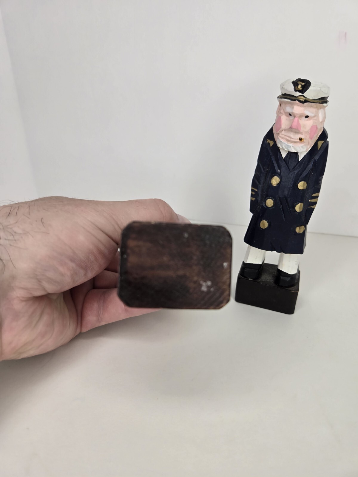 как выглядит Vintage Nautical Captain Wooden Carved Statues Sea Sailors Fisherman Figure FLAW фото