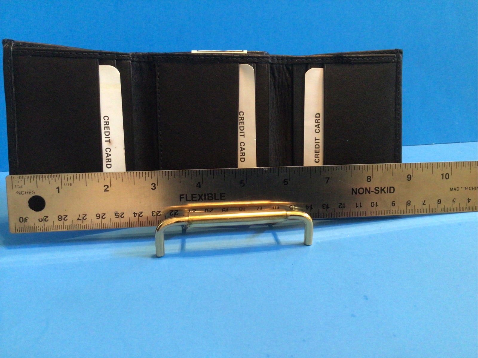как выглядит Mens Trifold Grain Leather Black Wallet Credit Card Case Window ID Money G85N фото