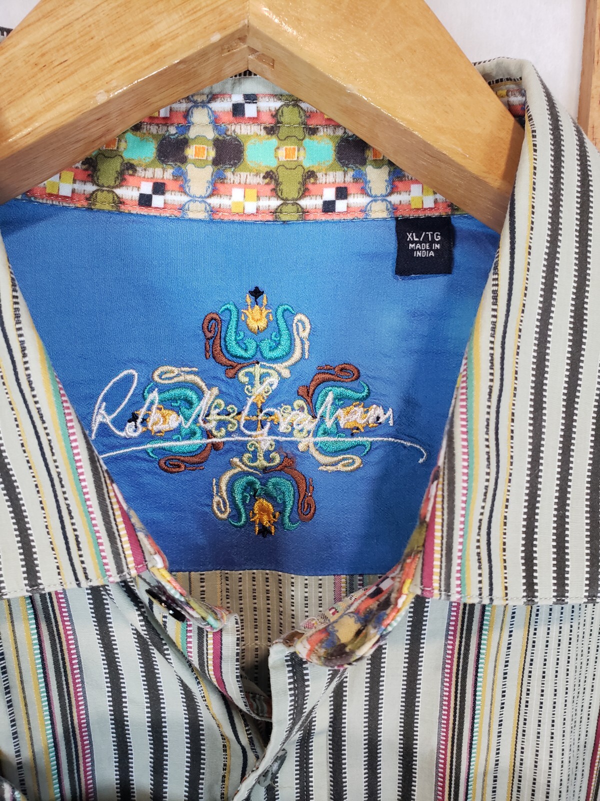 как выглядит Robert Graham Button Dowm Long Sleev Shirt Flip Cuff Multicolor Striped Mens XL фото