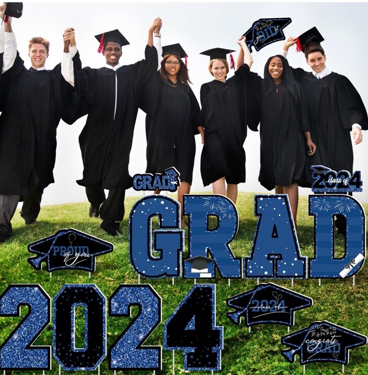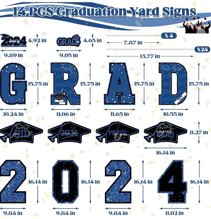 как выглядит 14 PCS Graduation Yard Signs, Blue Graduation Class of 2024 Yard Sign, Congratul фото