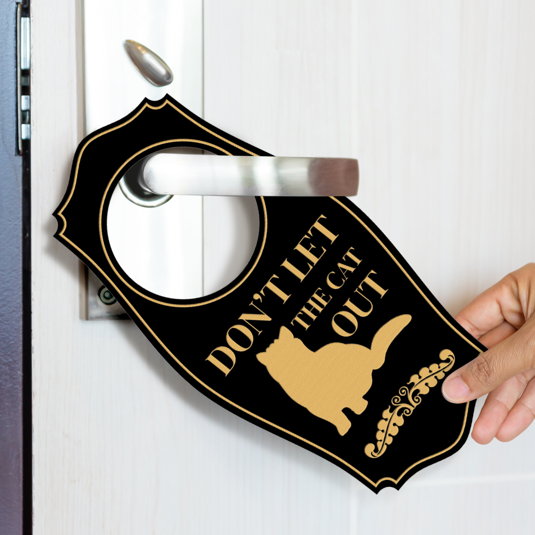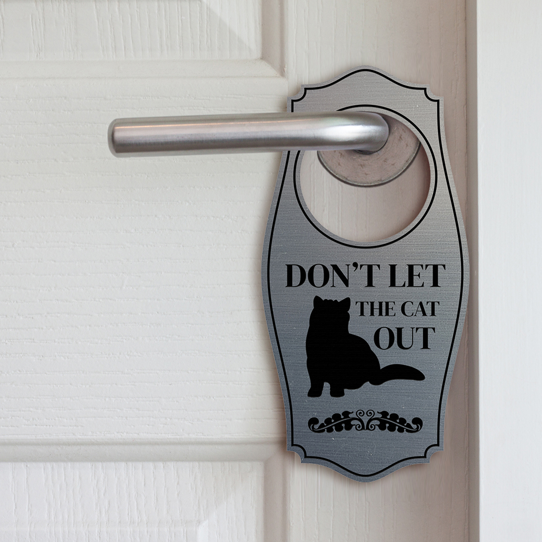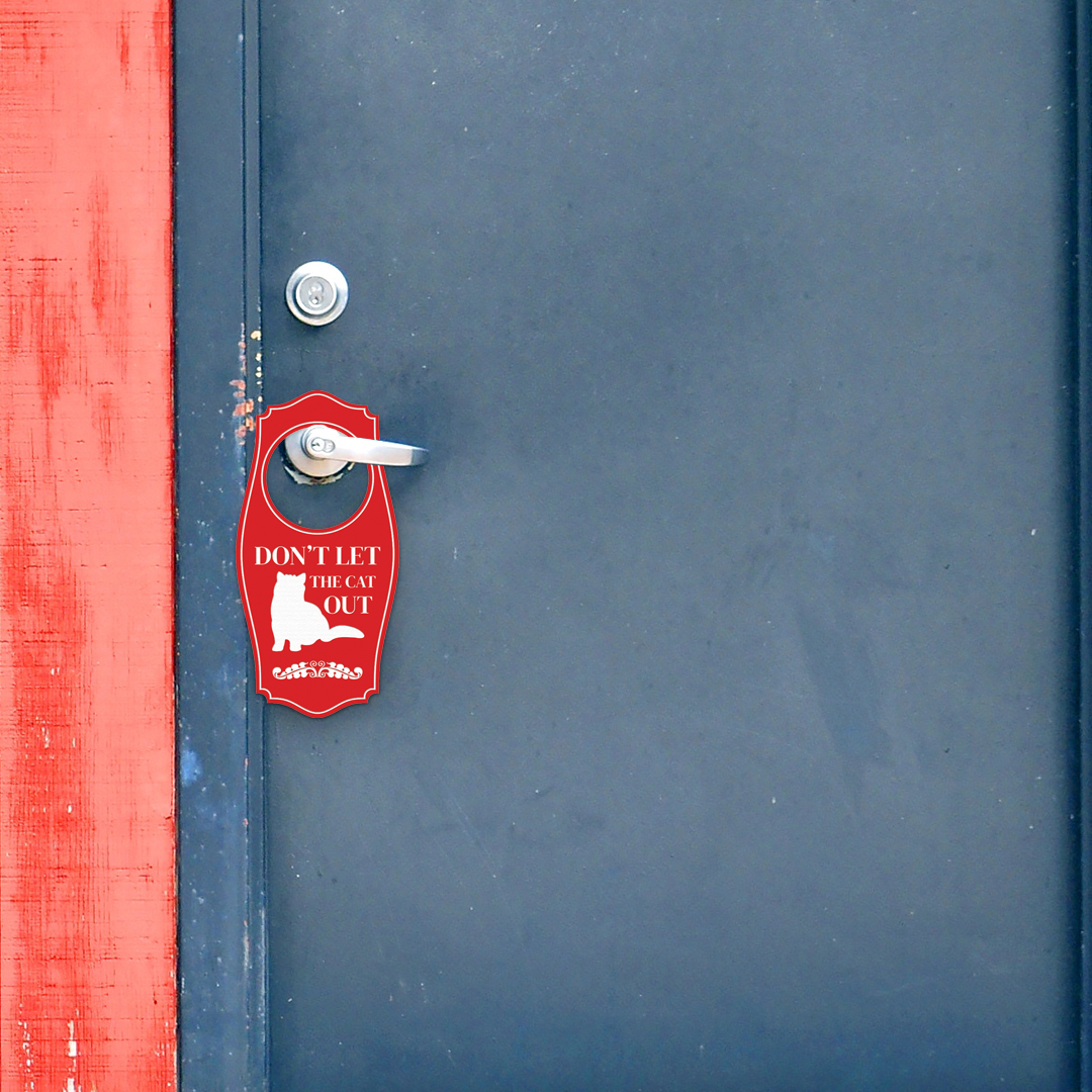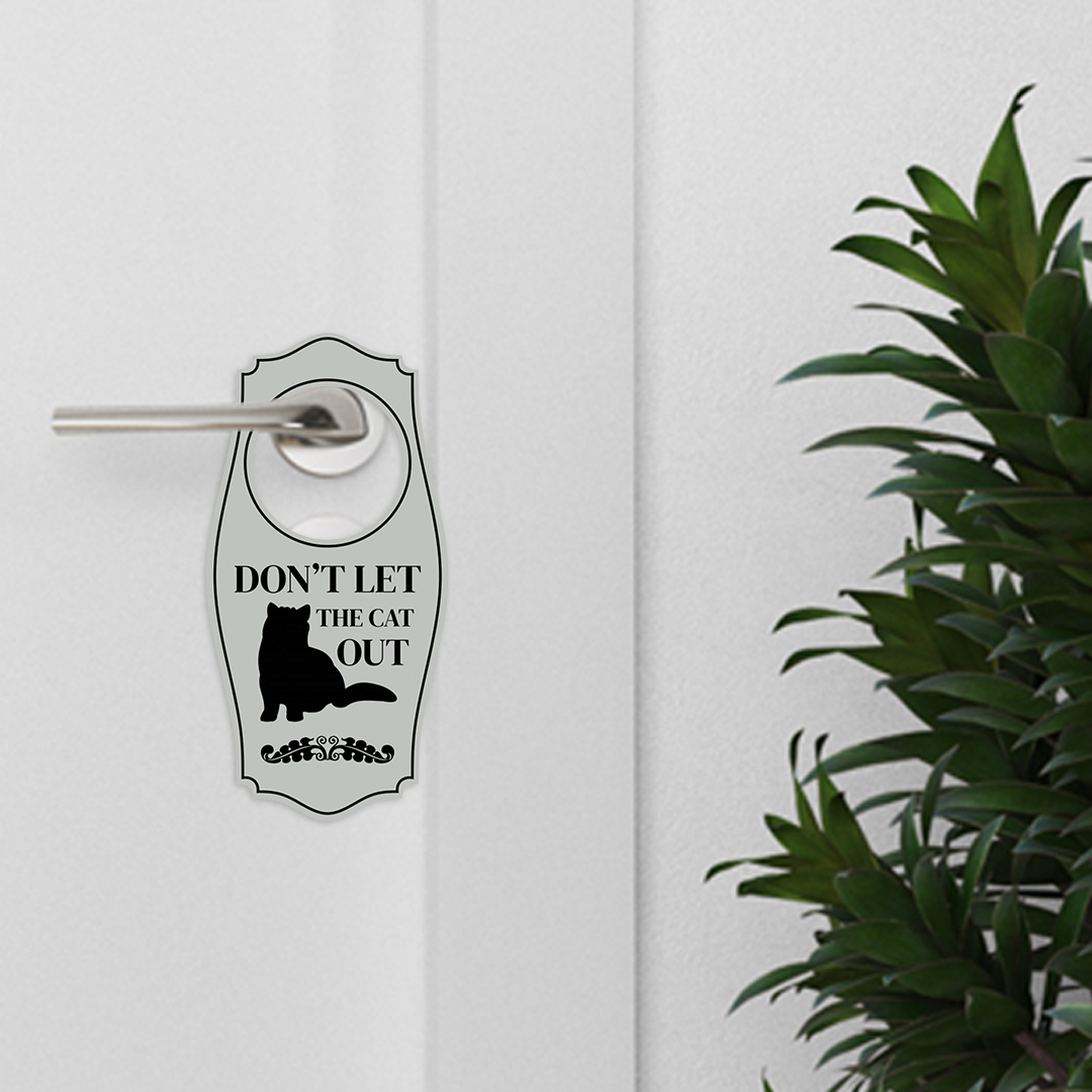 Don't Let The Cat Out Door Hanger House or Business Door Sign